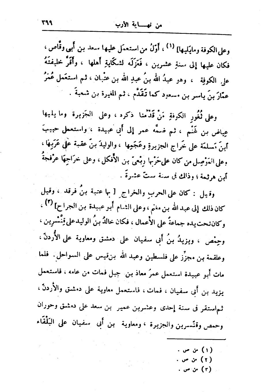 وعلى ثغور الكوفة من قدّمنا ذكره، وعلى الجزيرة وما يليها عياض بن غنم، ثم ضمّه عمر إلى أبى عبيدة، واستعمل حبيب ابن مسلمة على خراج الجزيرة وعجمها، والوليد بن عقبة على عربها، وعلى الموصل من كان على حربها ربعىّ بن الأفكل، وعلى خراجها عرفجة ابن هرثمة؛ وذلك فى سنة ستّ عشرة.