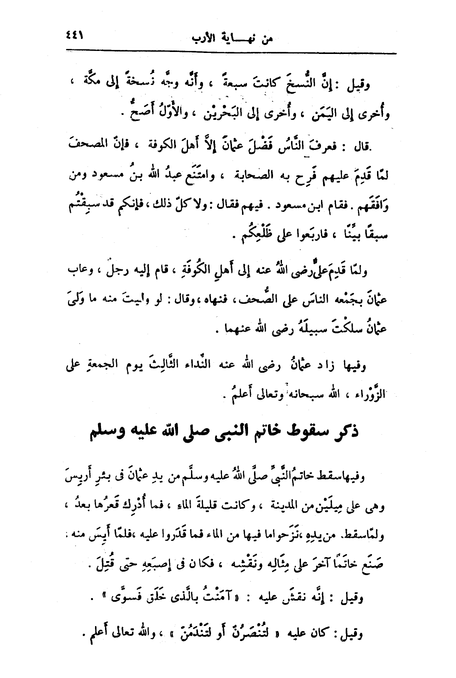 ذكر سقوط خاتم النبى صلى الله عليه وسلم