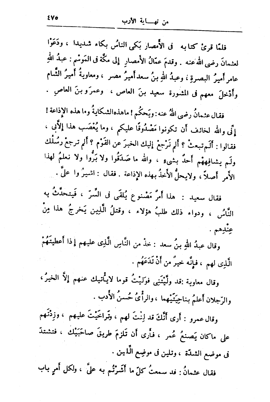 فقال عثمان رضى الله عنه: ويحكم! ما هذه الشكاية وما هذه الإذاعة! إنّى والله لخائف أن تكونوا مصدوقا عليكم، وما يعصب هذا إلّا بى، فقالوا: ألم تبعث؟ ألم نرجع إليك الخبر عن القوم؟ ألم ترجع رسلك ولم يشافههم أحد بشىء، والله ما صدقوا ولا برّوا ولا نعلم لهذا الأمر أصلا، ولا يحلّ الأخذ بهذه الإذاعة. فقال: اشيروا علىّ.