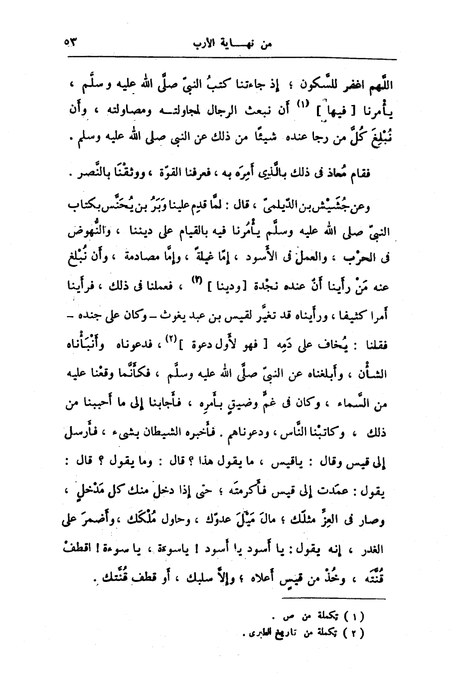 اللهم اغفر للسّكون؛ إذ جاءتنا كتب النبىّ صلّى الله عليه وسلّم، يأمرنا [فيها] [1] أن نبعث الرجال لمجاولته ومصاولته، وأن نبلغ كلّ من رجا عنده شيئا من ذلك عن النبى صلى الله عليه وسلم.