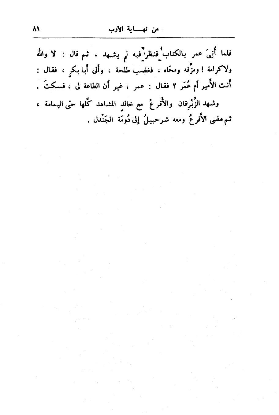 وشهد الزّبرقان والأقرع مع خالد المشاهد كلّها حتى اليمامة، ثم مضى الأقرع ومعه شرحبيل إلى دومة الجندل.
