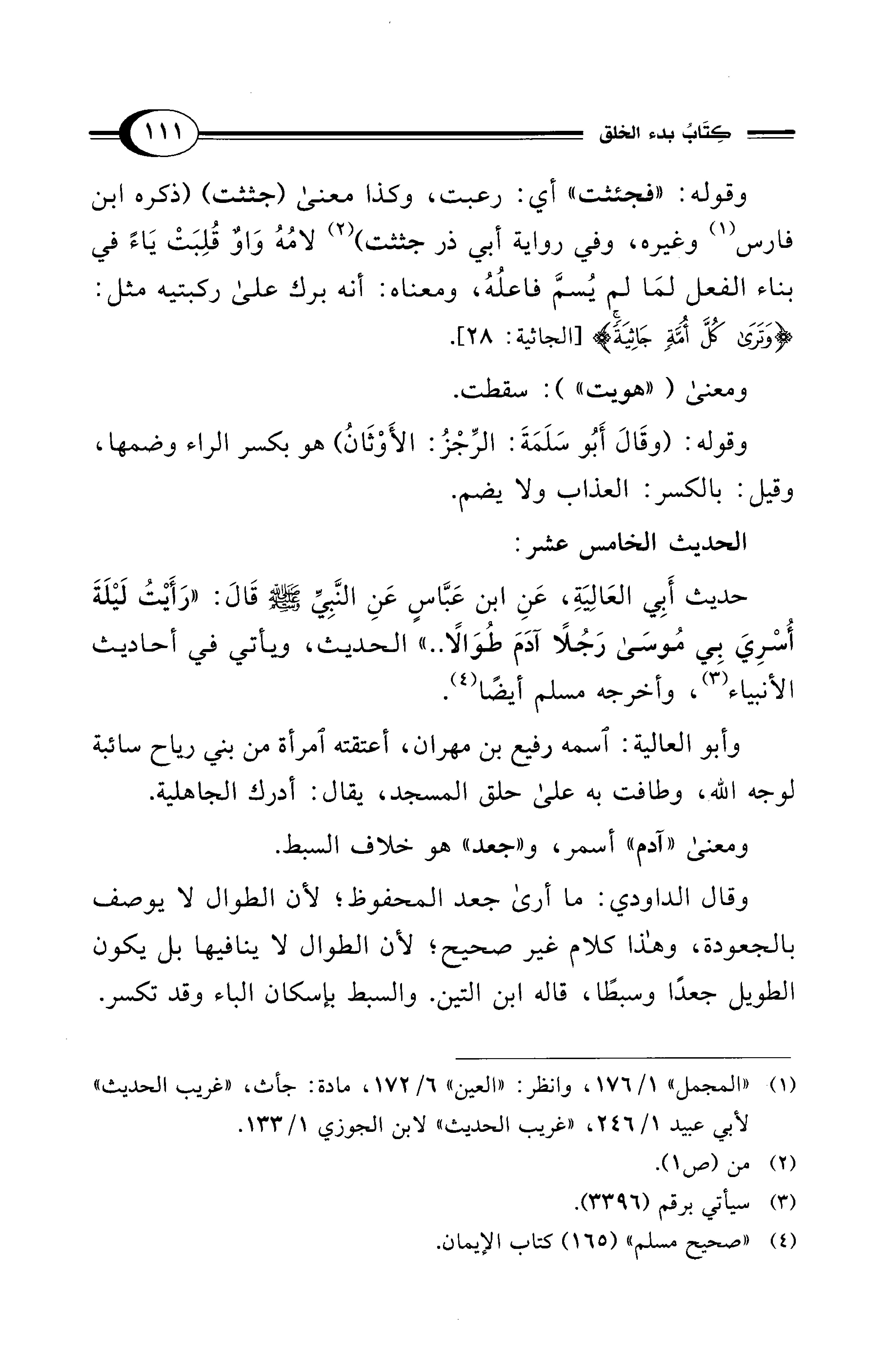 (¬1) "المجمل" 1/ 176، وانظر: "العين" 6/ 172، مادة: جأث، "غريب الحديث" لأبي عبيد 1/ 246، "غريب الحديث" لابن الجوزي 1/ 133.