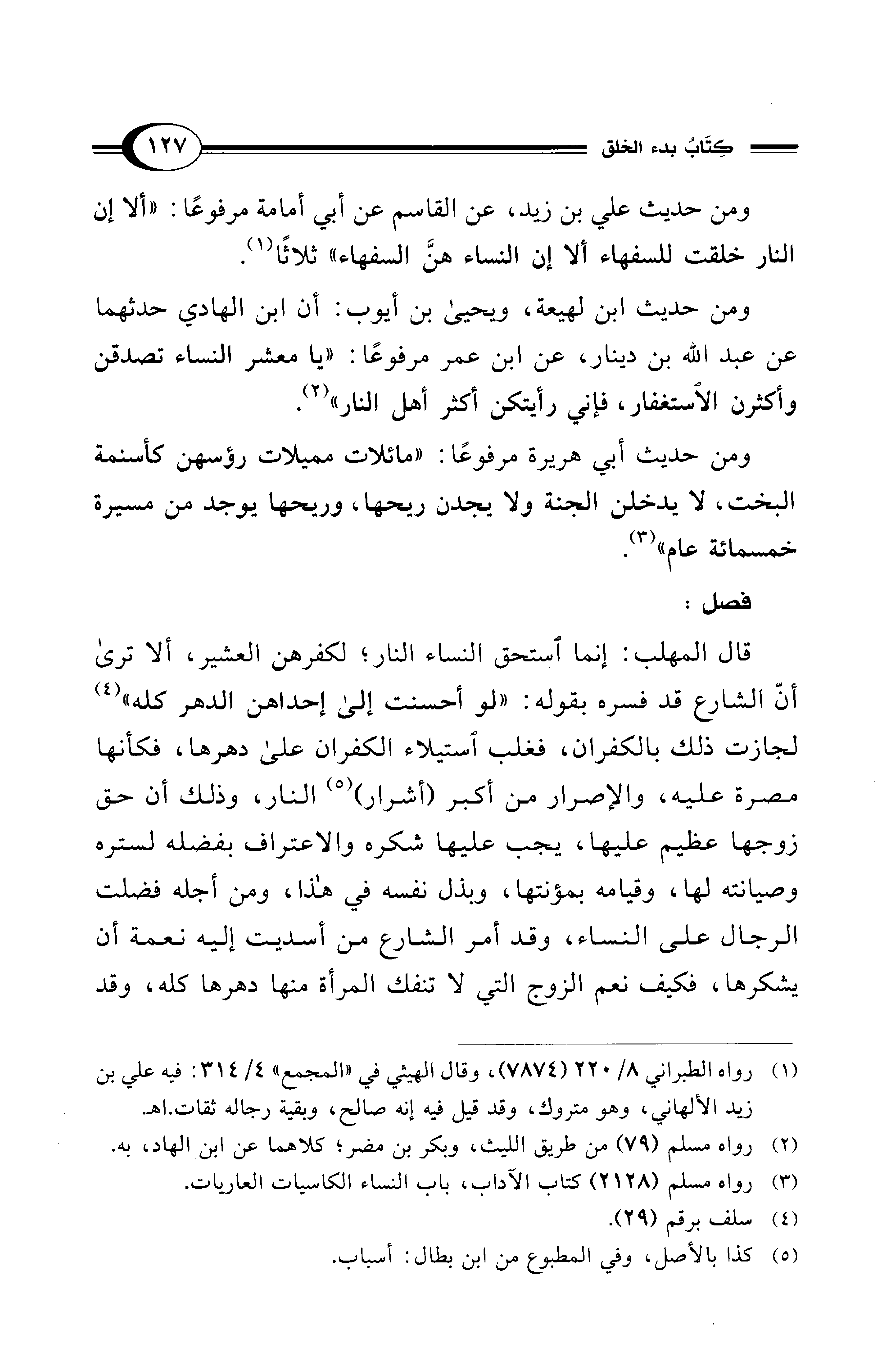 ومن حديث علي بن زيد، عن القاسم عن أبي أمامة مرفوعًا: "ألا إن النار خلقت للسفهاء ألا إن النساء هنَّ السفهاء" ثلاثًا (¬1).