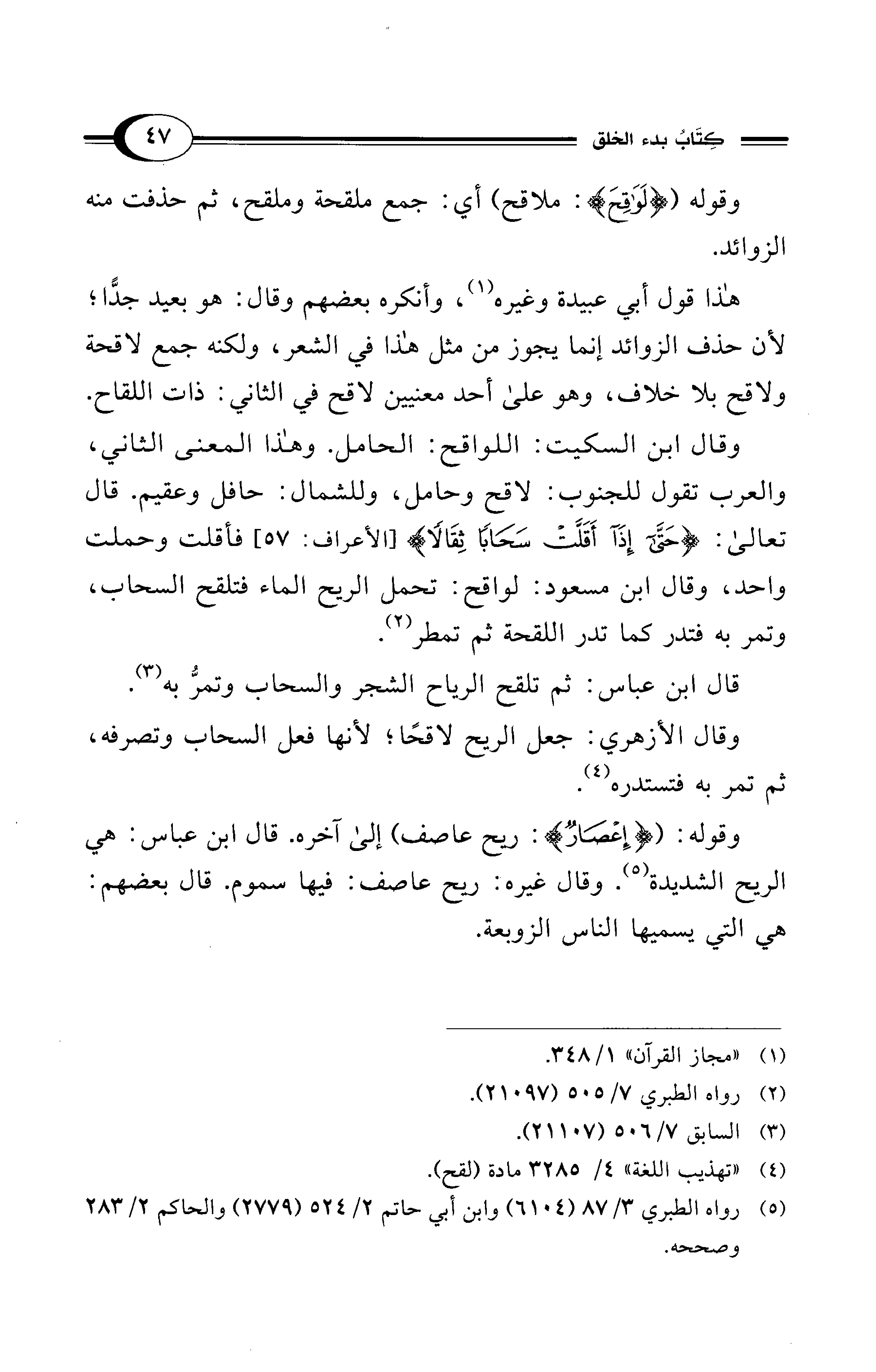 وقوله ({لَوَاقِحَ}: ملاقح) أي: جمع ملقحة وملقح، ثم حذفت منه الزوائد.