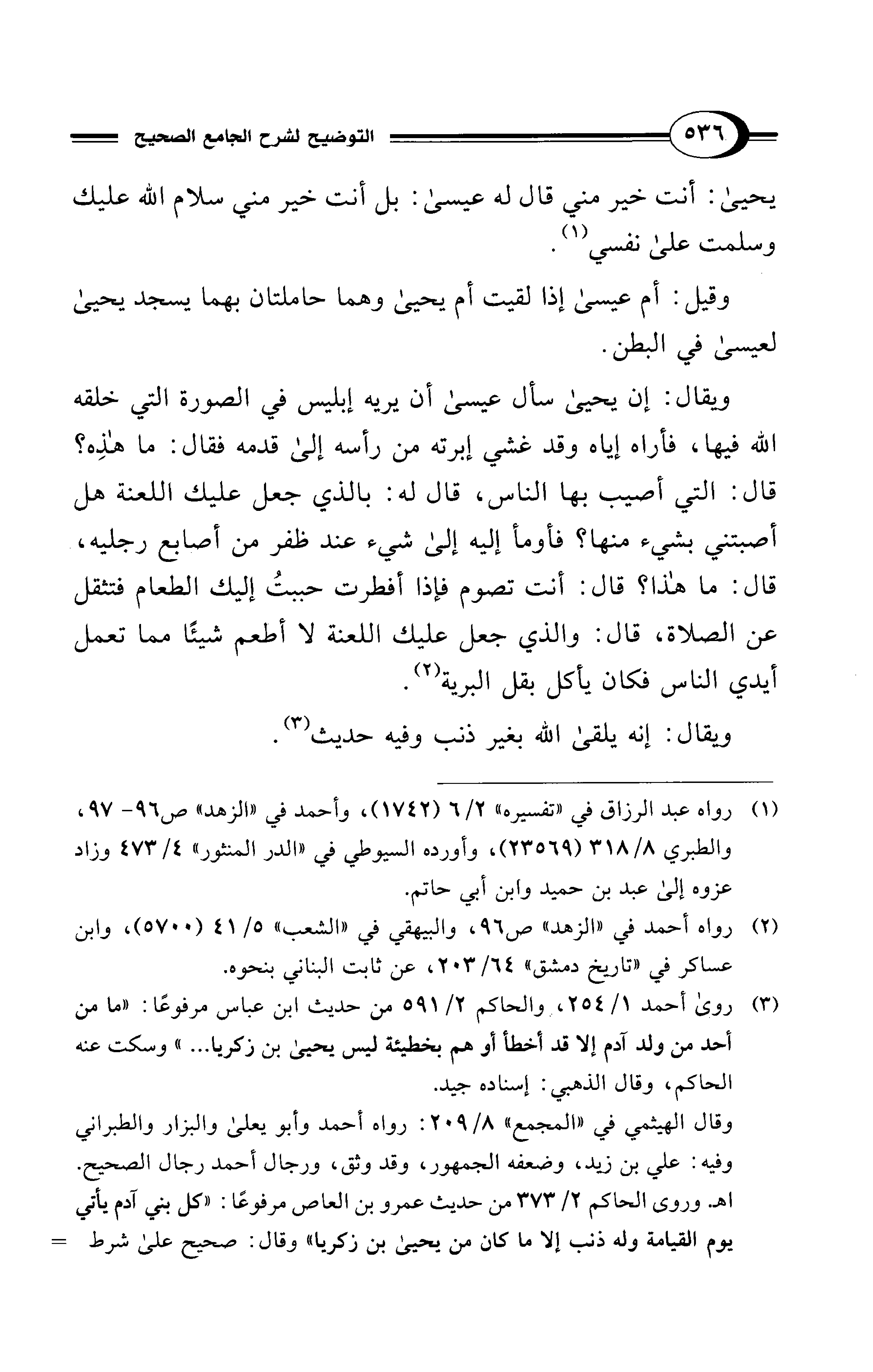 (¬3) رواه أحمد 1/ 254، والحاكم 2/ 591 من حديث ابن عباس مرفوعًا: "ما من أحد من ولد آدم إلا قد أخطأ أو هم بخطيئة ليس يحيى بن زكريا ... " وسكت عنه الحاكم, وقال الذهبي: إسناده جيد.