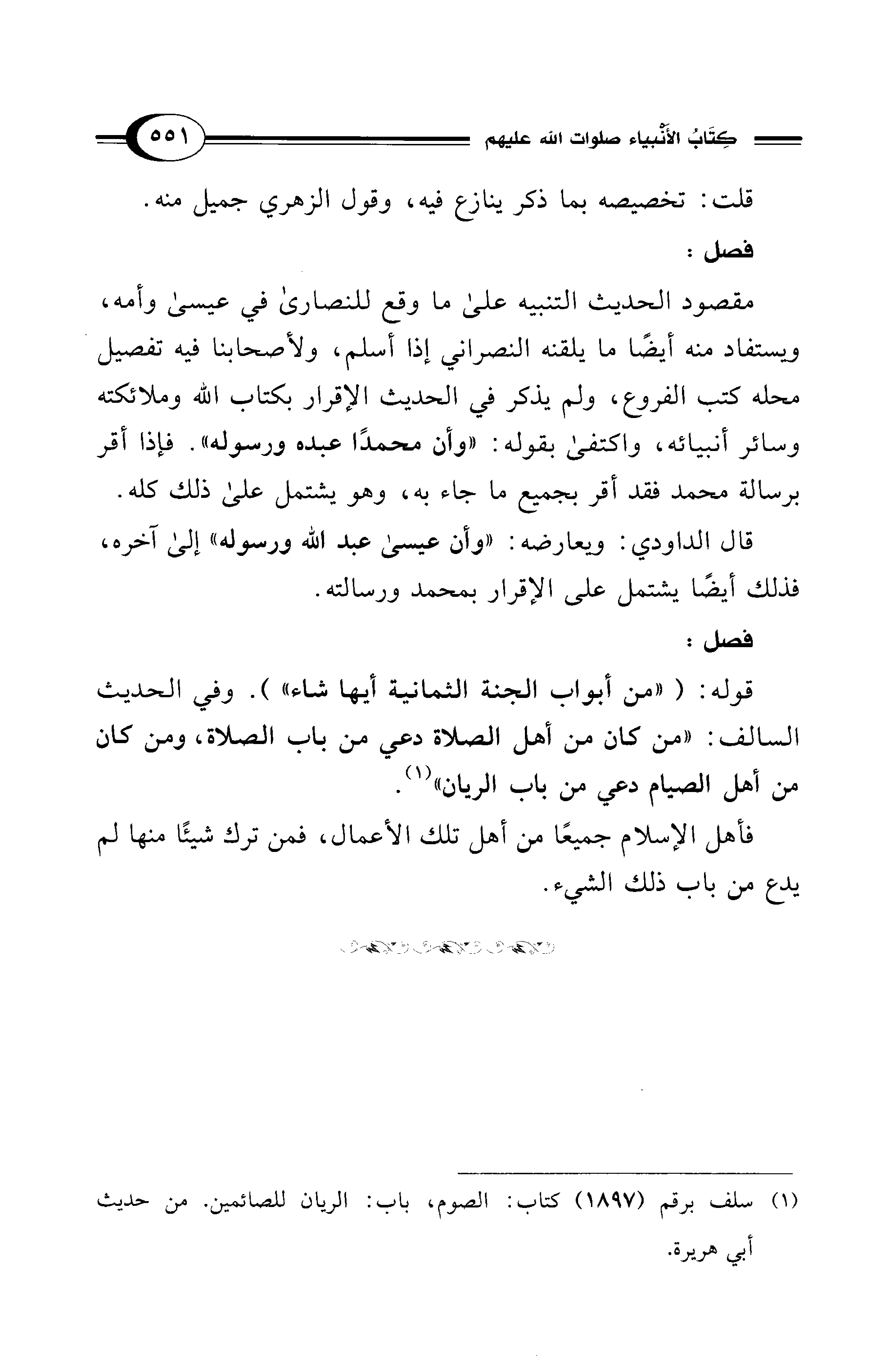 (¬1) سلف برقم (1897) كتاب: الصوم، باب: الريان للصائمين. من حديث أبي هريرة.