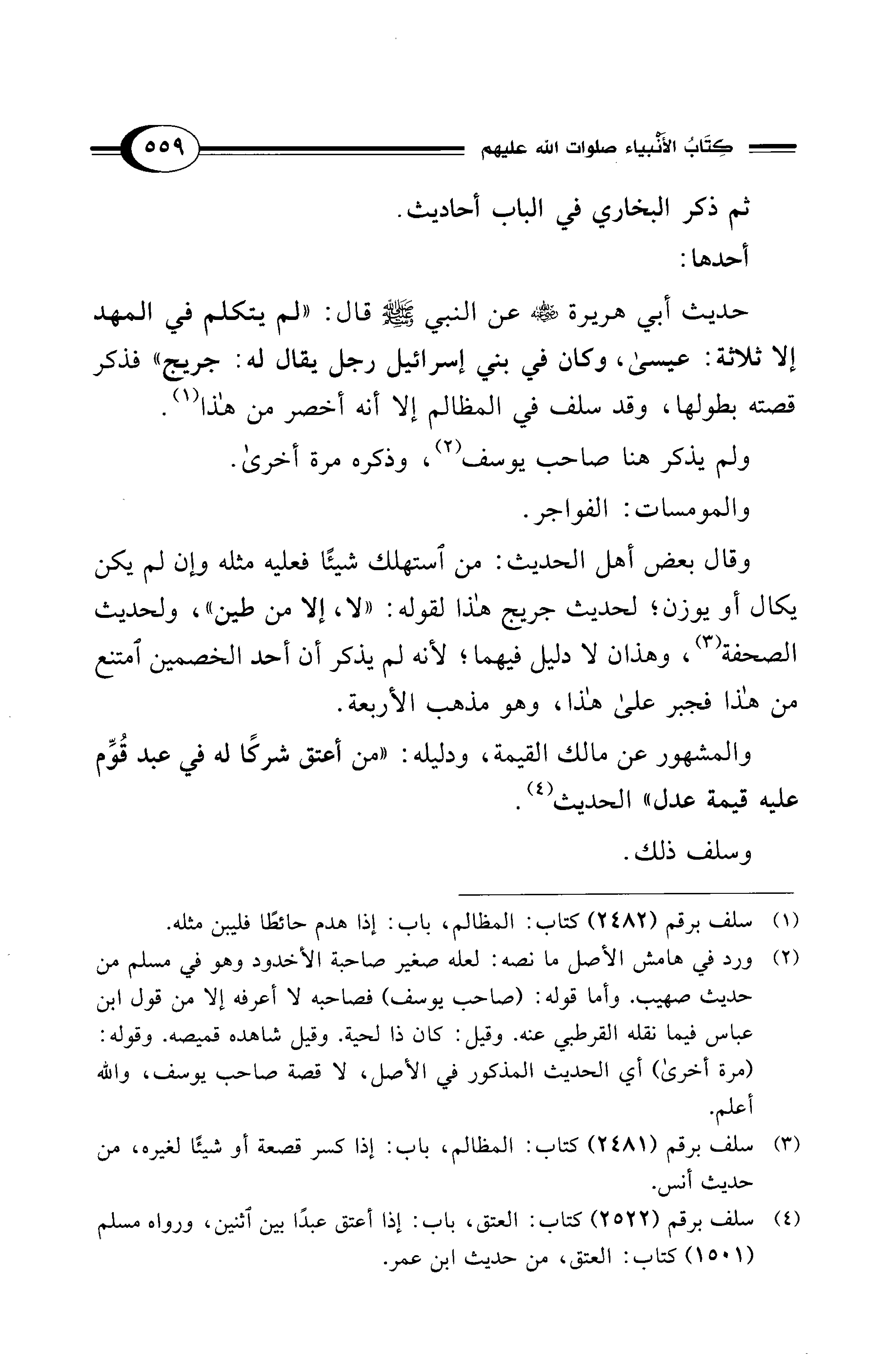 (¬2) ورد في هامش الأصل ما نصه: لعله صغير صاحبة الأخدود وهو في مسلم من حديث صهيب. وأما قوله: (صاحب يوسف) فصاحبه لا أعرفه إلا من قول ابن عباس فيما نقله القرطبي عنه. وقيل: كان ذا لحية. وقيل شاهده قميصه. وقوله: (مرة أخرى) أي الحديث المذكور في الأصل، لا قصة صاحب يوسف، والله أعلم.