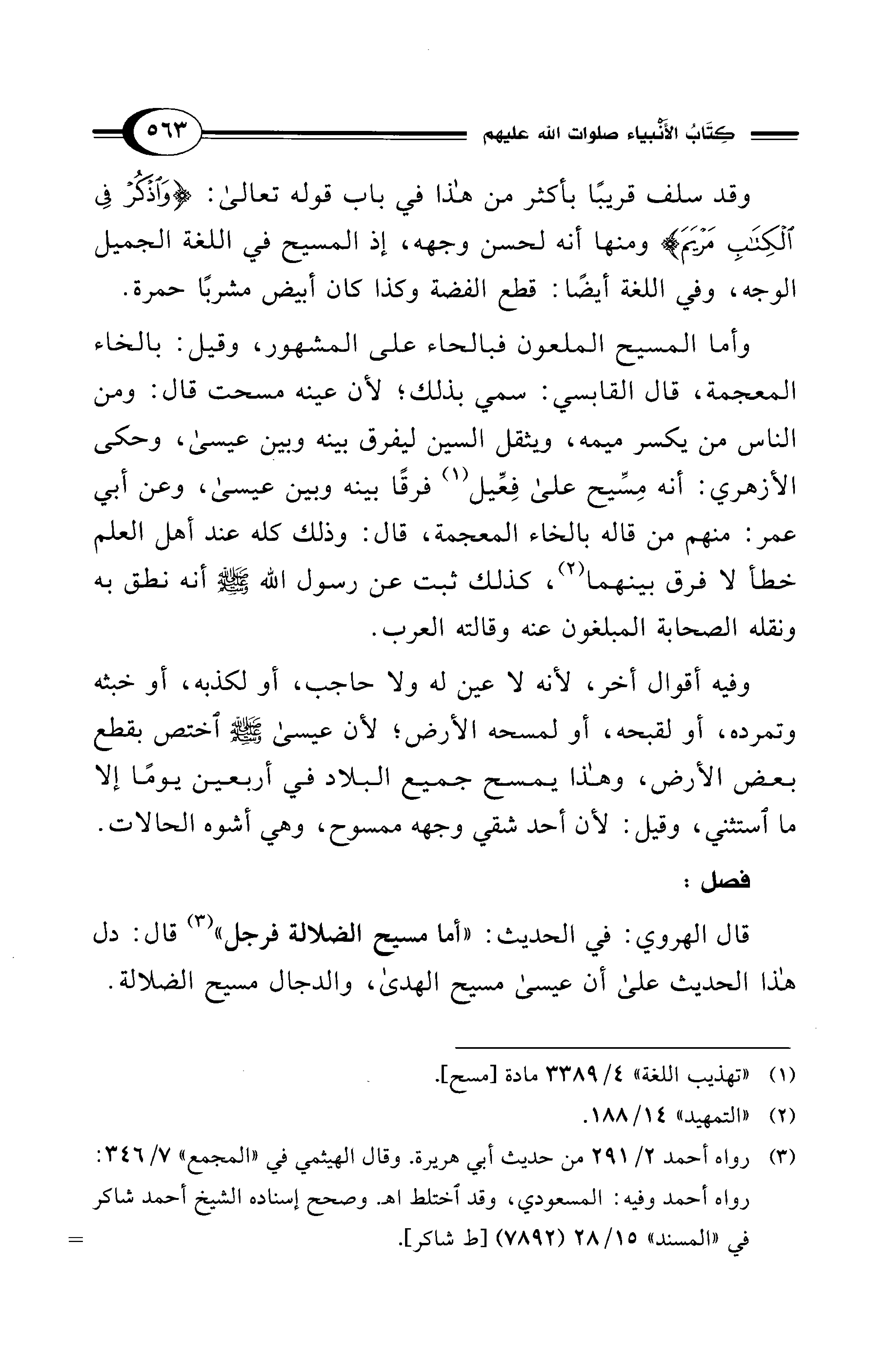 قال الهروي: في الحديث: "أما مسيح الضلالة فرجل" (¬3) قال: دل هذا الحديث على أن عيسى مسيح الهدى، والدجال مسيح الضلالة.