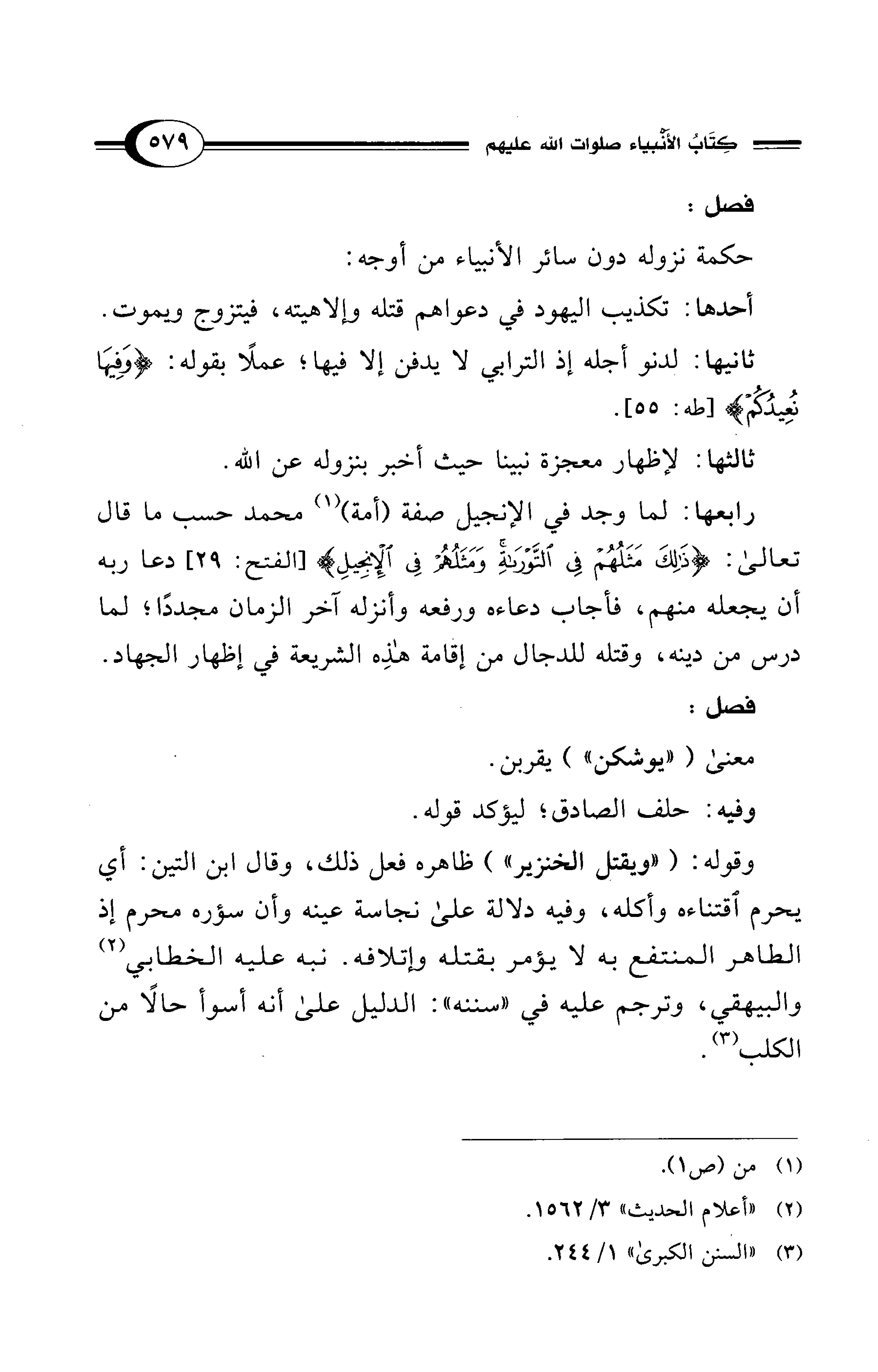 رابعها: لما وجد في الإنجيل صفة (أمة) (¬1) محمد حسب ما قال تعالى: {ذَلِكَ مَثَلُهُمْ فِي التَّوْرَاةِ وَمَثَلُهُمْ فِي الْإِنْجِيلِ} [الفتح: 29] دعا ربه أن يجعله منهم، فأجاب دعاءه ورفعه وأنزله آخر الزمان مجددًا؛ لما درس من دينه، وقتله للدجال من إقامة هذِه الشريعة في إظهار الجهاد.