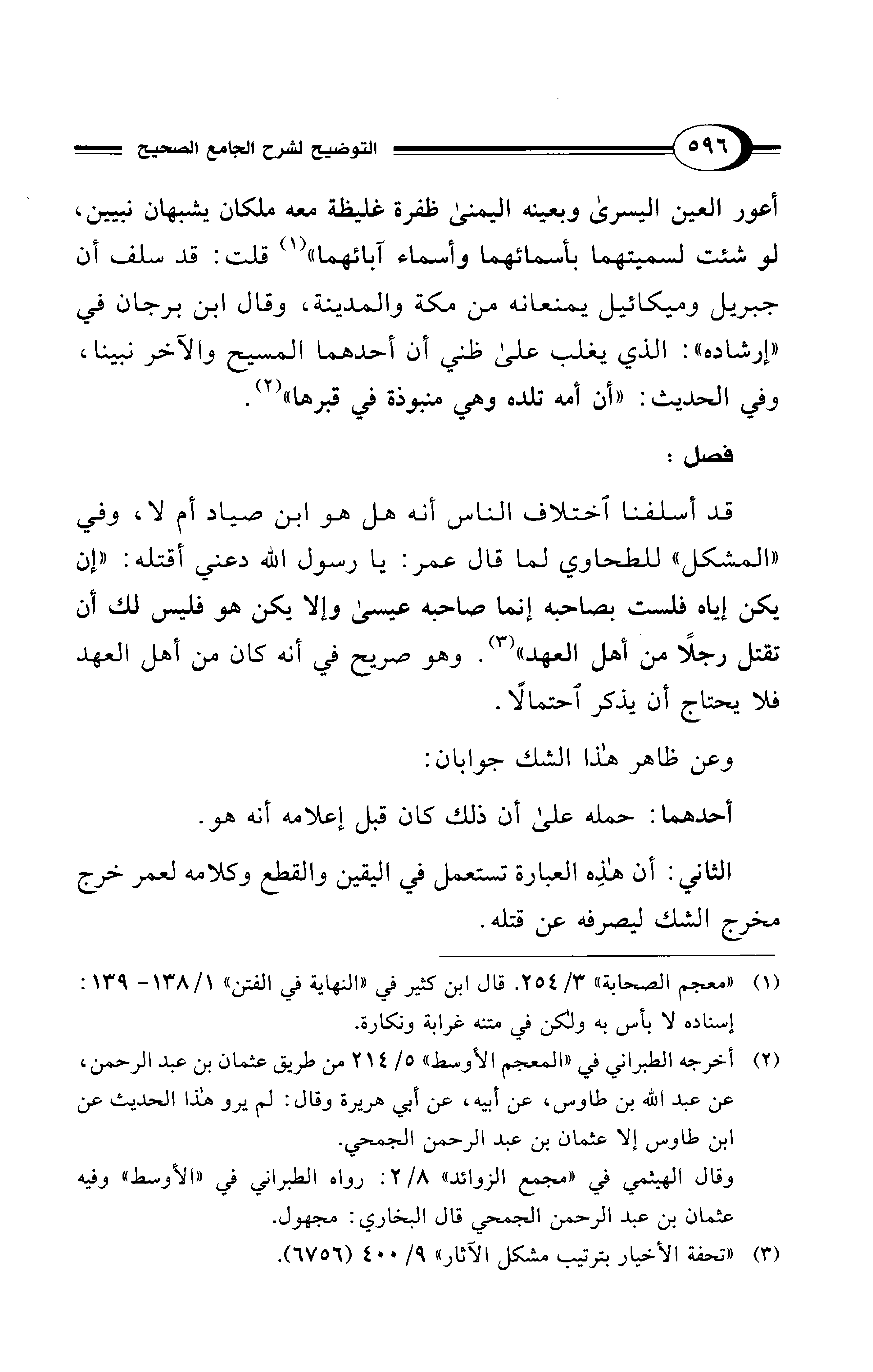 قد أسلفنا اختلاف الناس أنه هل هوابن صياد أم لا، وفي "المشكل" للطحاوي لما قال عمر: يا رسول الله دعني أقتله: "إن يكن إياه فلمست بصاحبه إنما صاحبه عيسى وإلا يكن هو فليس لك أن تقتل رجلاً من أهل العهد" (¬3). وهو صريح في أنه كان من أهل العهد فلا يحتاج أن يذكر احتمالًا.