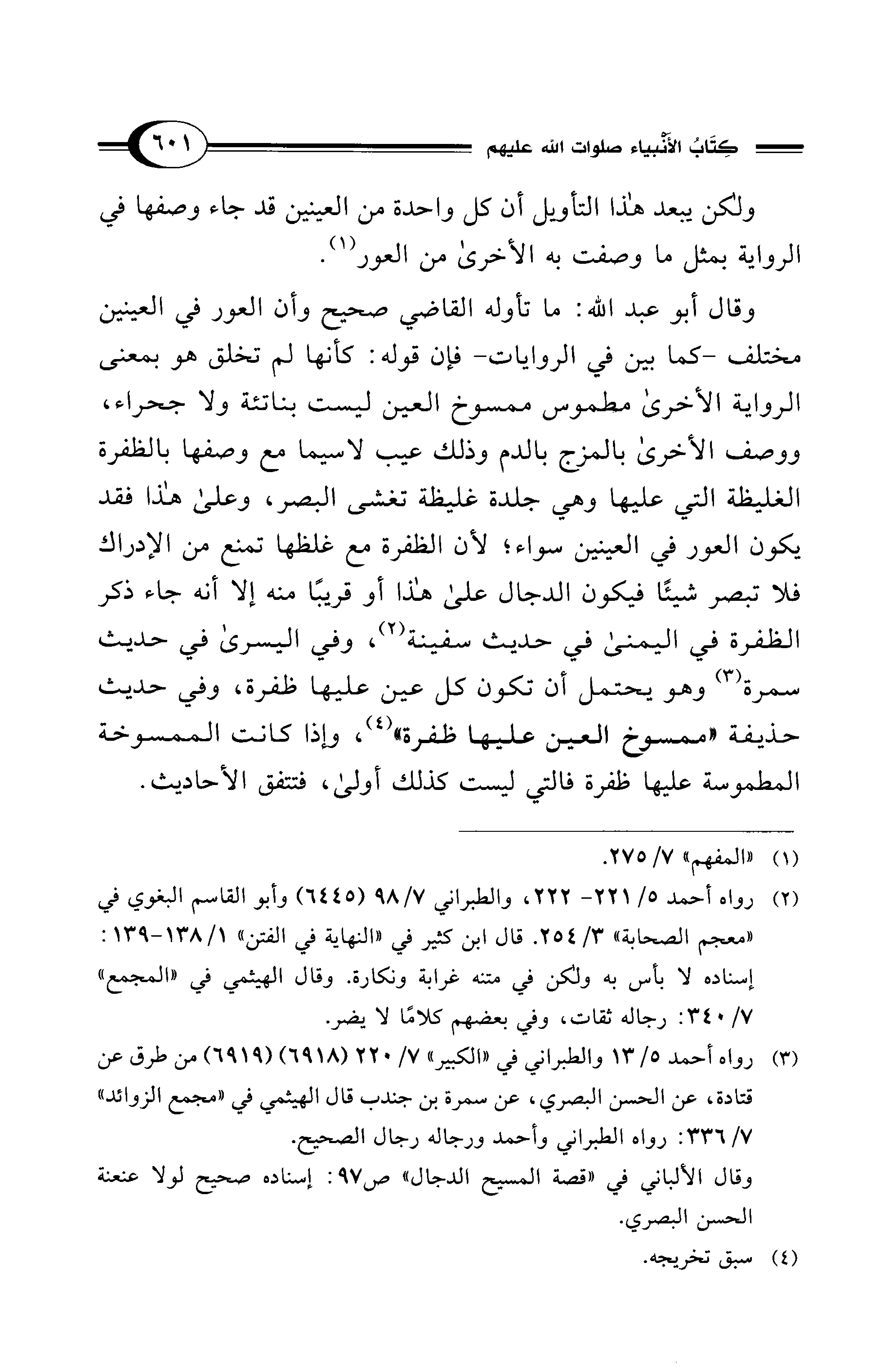 ولكن يبعد هذا التأويل أن كل واحدة من العينين قد جاء وصفها في الرواية بمثل ما وصفت به الأخرى من العور (¬1).