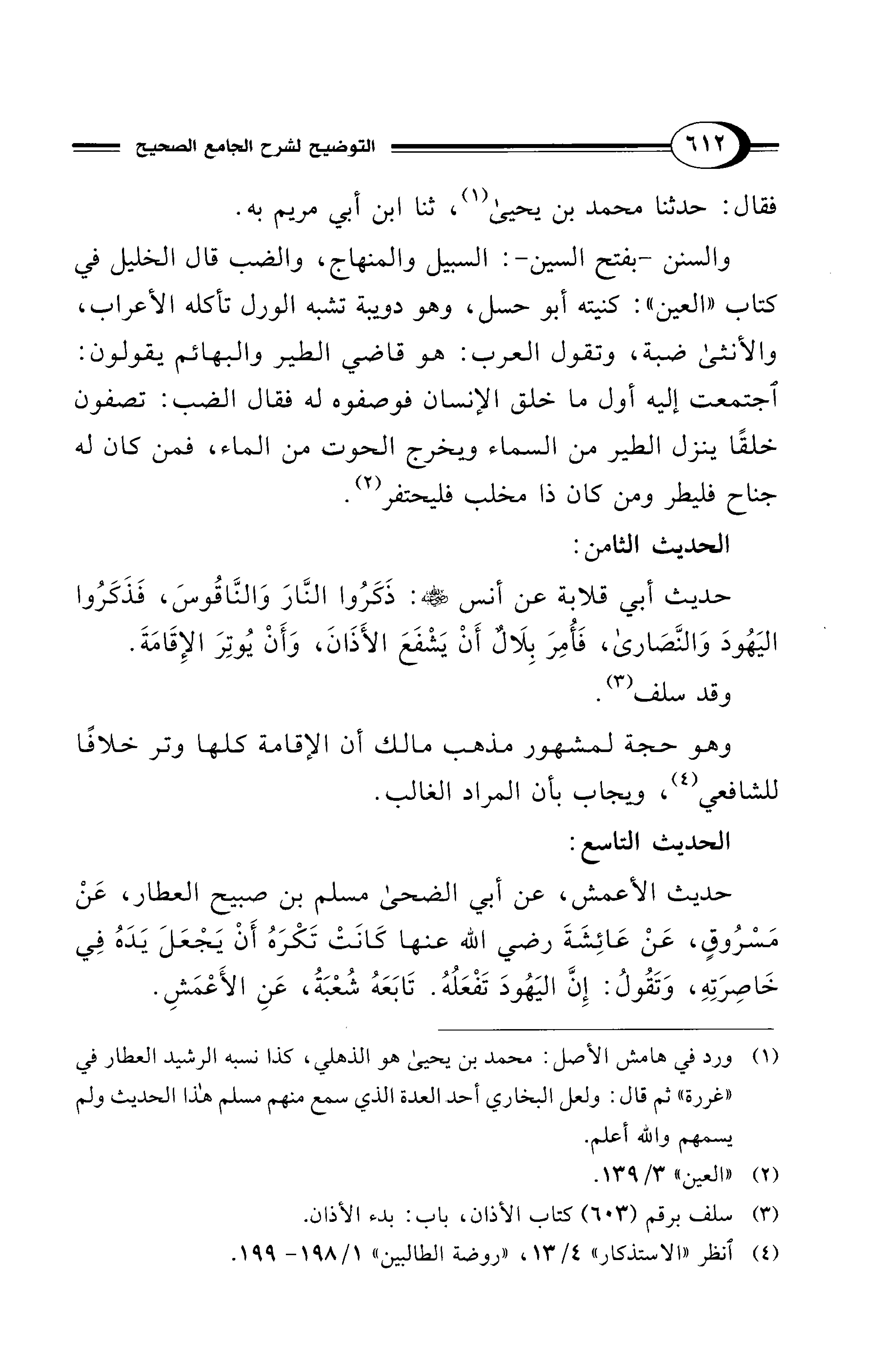 (¬1) ورد في هامش الأصل: محمد بن يحيى هو الذهلي، كذا نسبه الرشيد العطار في "غررة" ثم قال: ولعل البخاري أحد العدة الذي سمع منهم مسلم هذا الحديث ولم يسمهم والله أعلم.