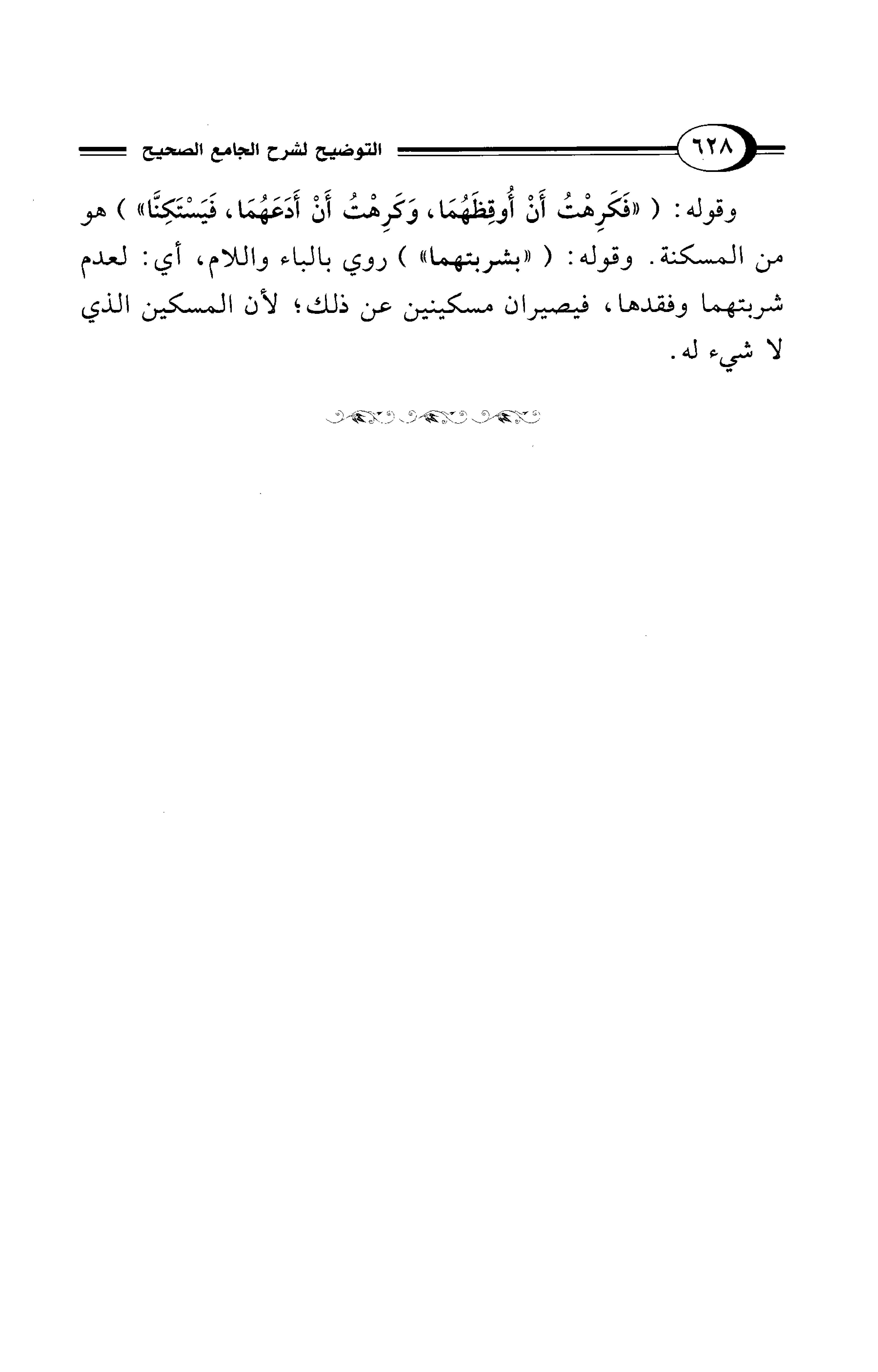 وقوله: ("فَكَرِهْتُ أَنْ أُوقِظَهُمَا، وَكَرِهْتُ أَنْ أَدَعَهُمَا، فَيَسْتَكِنَّا") هو من المسكنة. وقوله: ("بشربتهما") روي بالباء واللام، أي: لعدم شربتهما وفقدها، فيصيران مسكينين عن ذلك؛ لأن المسكين الذي لا شيء له.