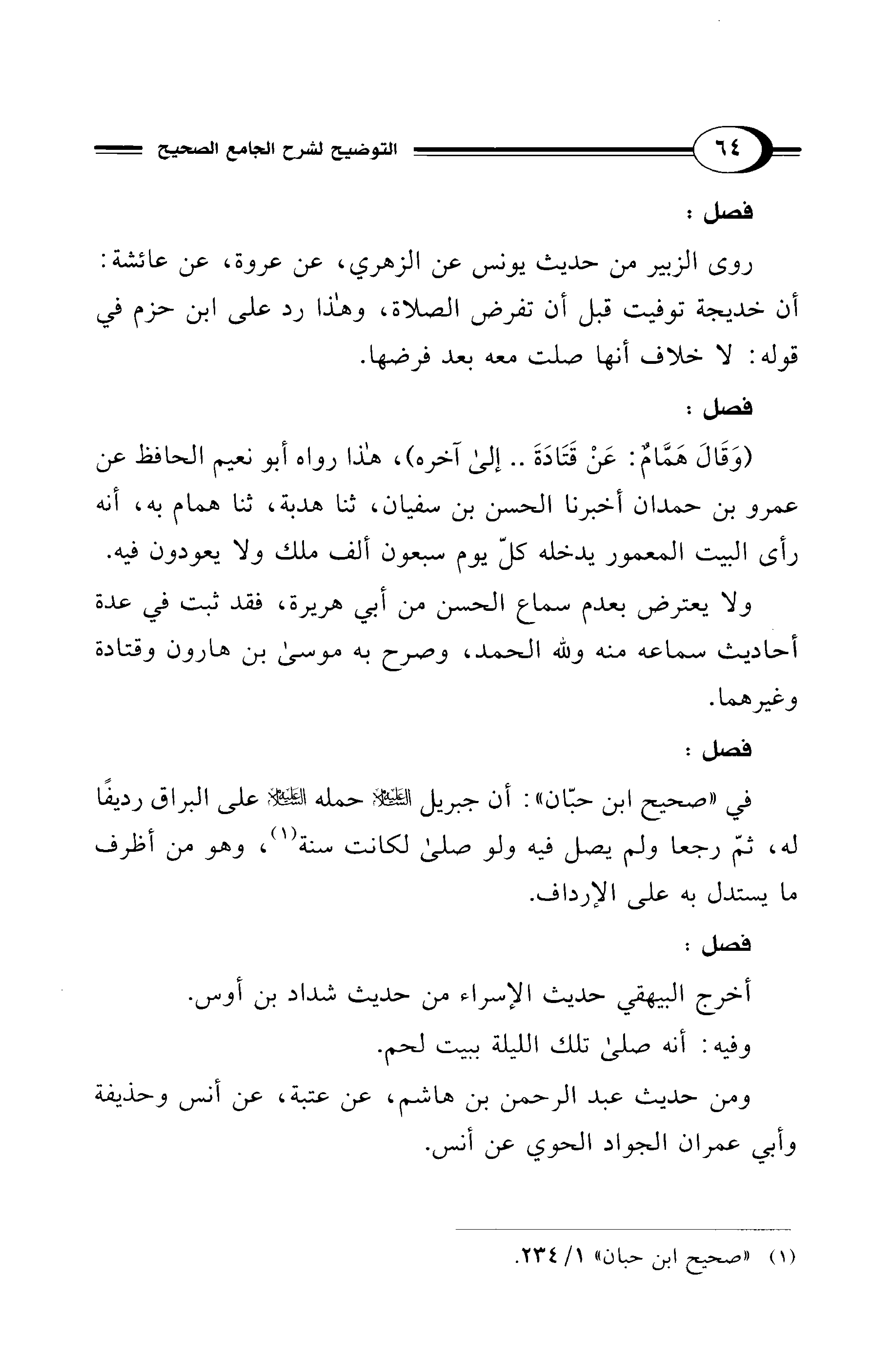 (¬1) "صحيح ابن حبان" 1/ 234.