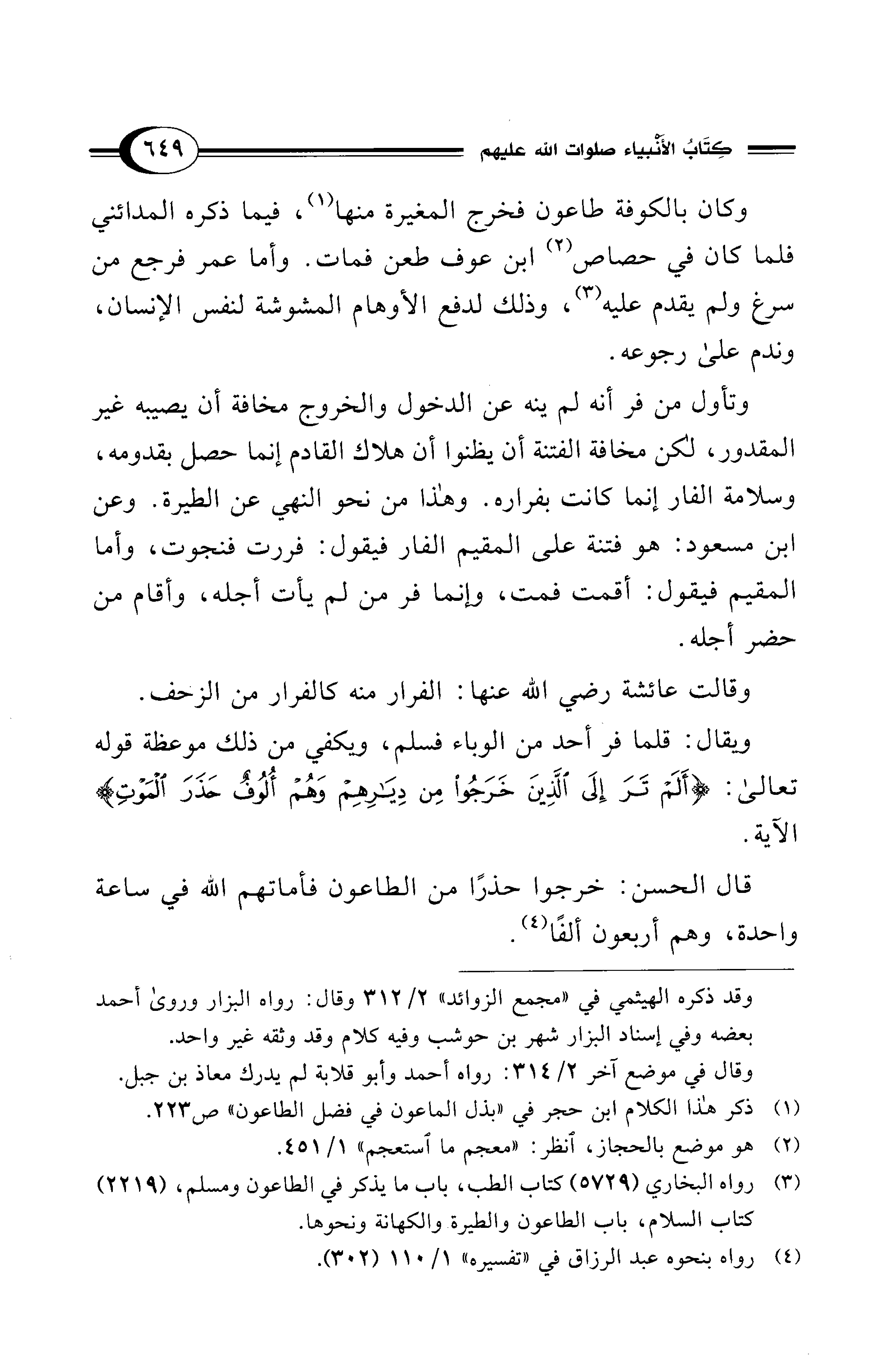 (¬1) ذكر هذا الكلام ابن حجر في "بذل الماعون في فضل الطاعون" ص223.