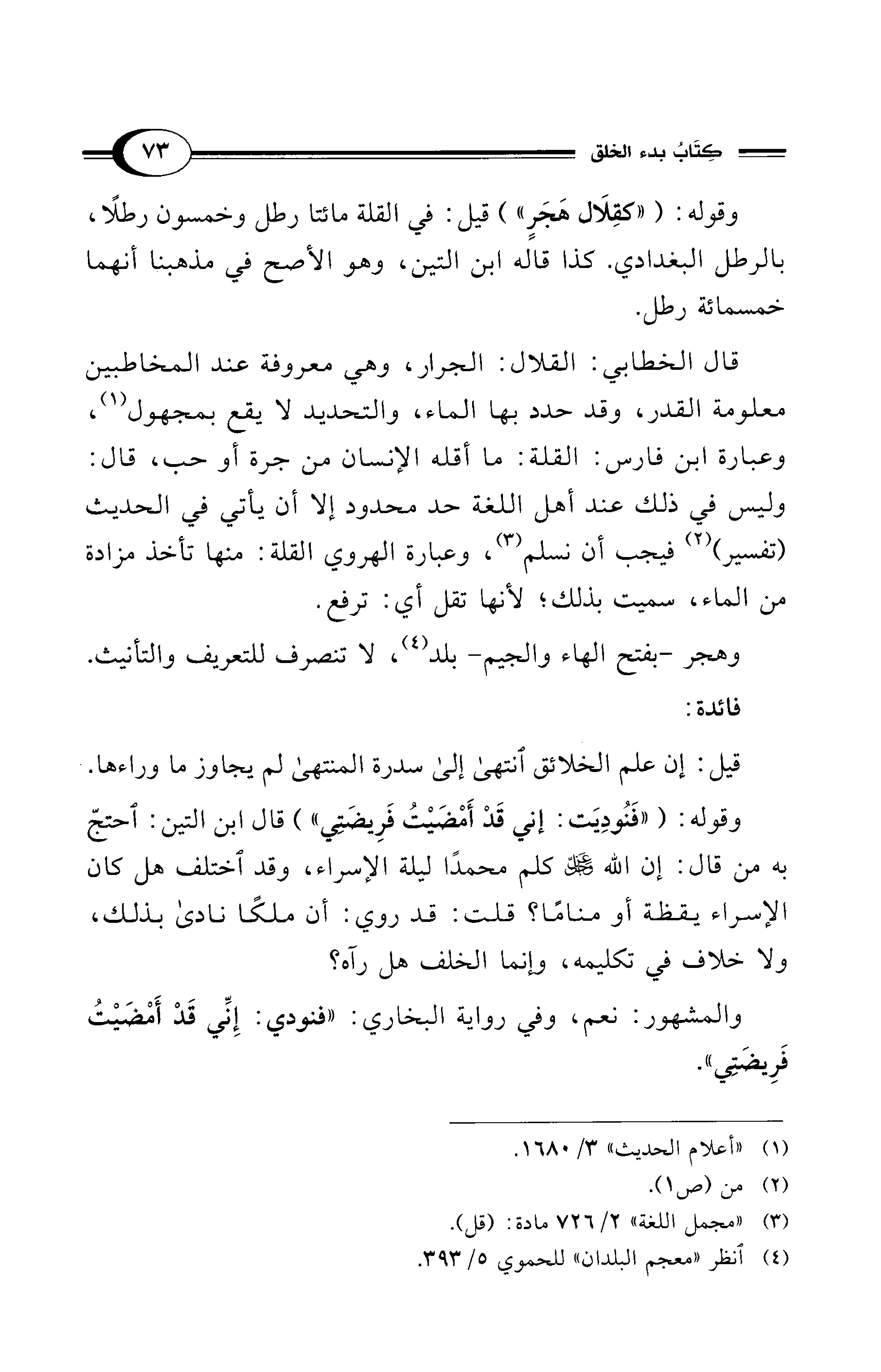وقوله: ("كقِلَال هَجَرٍ") قيل: في القلة مائتا رطل وخمسون رطلاً، بالرطل البغدادي. كذا قاله ابن التين، وهو الأصح في مذهبنا أنهما خمسمائة رطل.