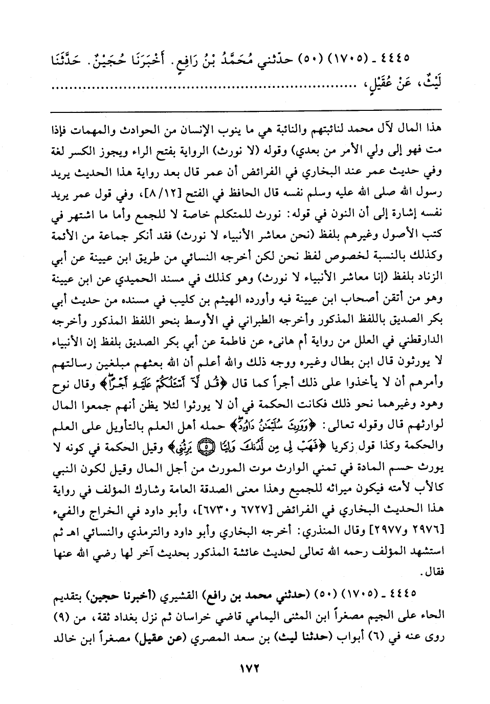 ٤٤٤٥ - (١٧٠٥) (٥٠) (حدثني محمد بن رافع) القشيري (أخبرنا حجين) بتقديم الحاء على الجبم مصغرًا ابن المثنى اليمامي قاضي خراسان ثم نزل بغداد ثقة، من (٩) روى عنه في (٦) أبواب (حدثنا ليث) بن سعد المصري (عن عقيل) مصغرًا ابن خالد