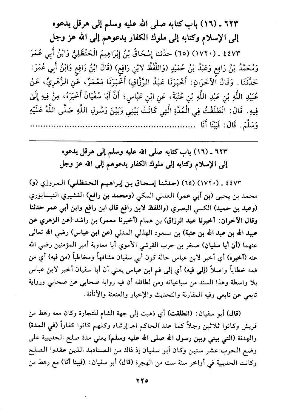 ٦٢٣ - (١٦) باب كتابه صلى الله عليه وسلم إلى هرقل يدعوه إلى الإسلام وكتابه إلى ملوك الكفار يدعوهم إلى الله عزَّ وجلَّ