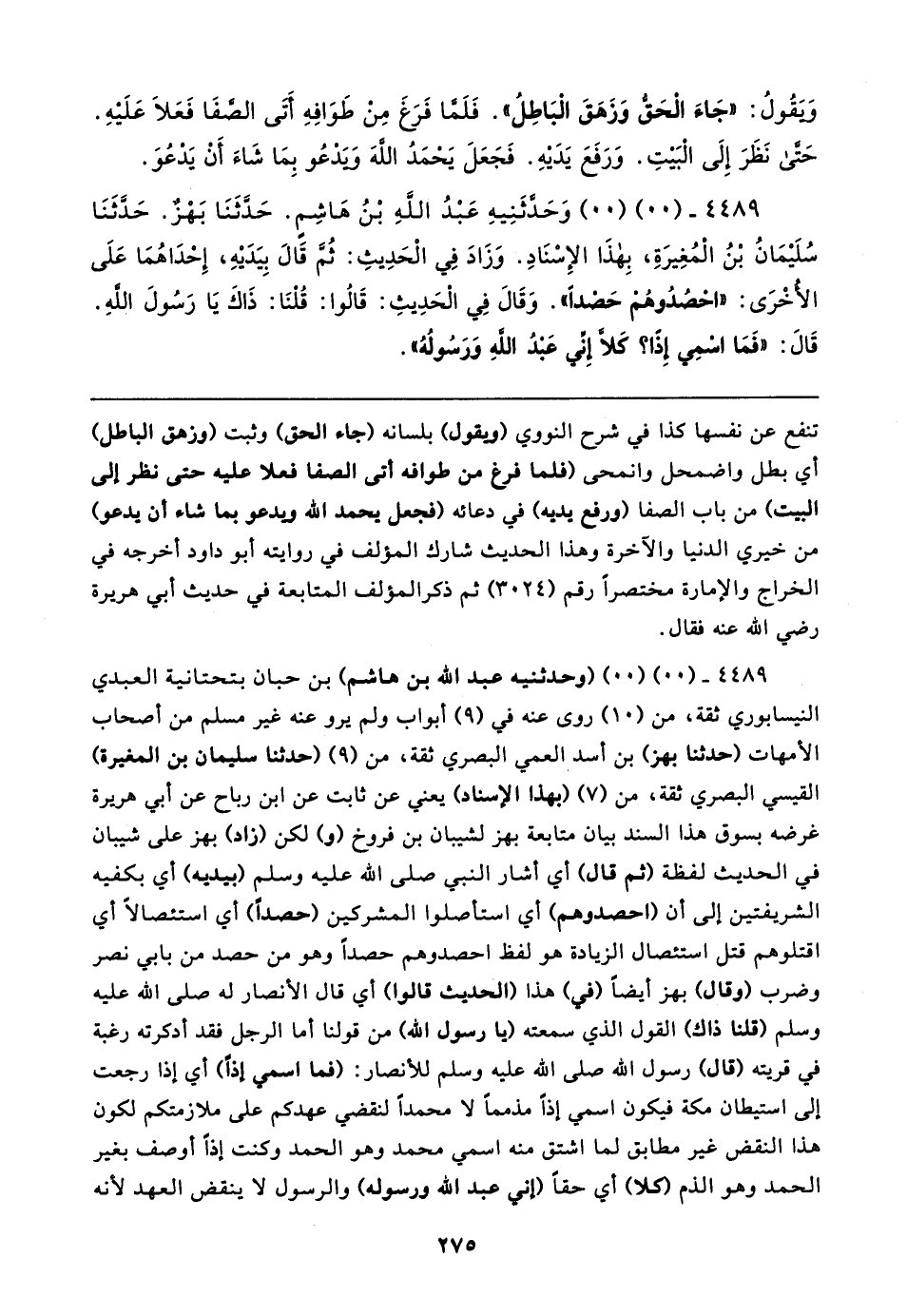 ٤٤٨٩ - (٠٠) (٠٠) وَحَدَّثَنِيهِ عَبْدُ اللهِ بْنُ هَاشِمٍ. حَدَّثَنَا بَهْزٌ. حَدَّثَنَا سُلَيمَانُ بْنُ الْمُغِيرَةِ، بِهذَا الإِسْنَادِ. وَزَادَ فِي الْحَدِيثِ: ثُمَّ قَال بِيَدَيهِ، إِحْدَاهُمَا عَلَى الأخْرَى: "احْصُدُوهُمْ حَصْدًا". وَقَال فِي الْحَدِيثِ: قَالُوا: قُلْنَا: ذَاكَ يَا رَسُولَ اللهِ. قَال: "فَمَا اسْمِي إِذًا؟ كَلَّا إِنِّي عَبدُ اللهِ وَرَسُولُهُ"