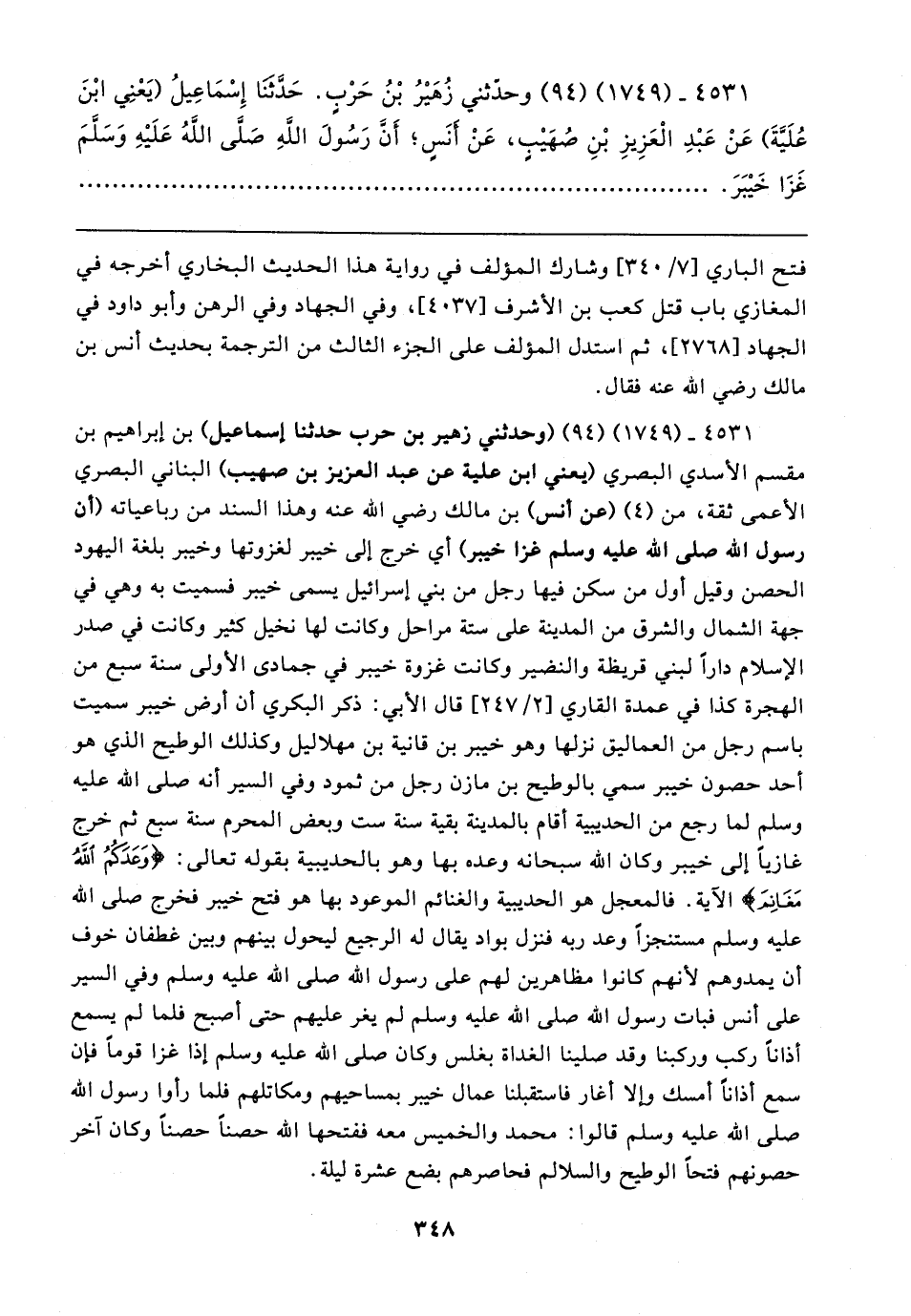 ٤٥٣١ - (١٧٤٩) (٩٤) وَحَدَّثَنِي زُهَيرُ بْنُ حَرْبٍ. حَدَّثَنَا إِسْمَاعِيلُ (يَعْنِي ابْنَ عُلَيَّةَ) عَنْ عَبْدِ الْعَزِيزِ بْنِ صُهَيبٍ, عَنْ أَنَسٍ؛ أَنَّ رَسُولَ اللهِ صلى الله عليه وسلم غَزَا خَيبَرَ