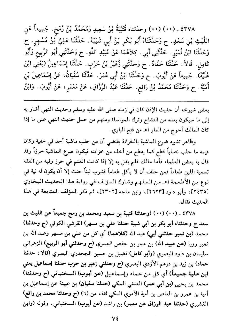 ٤٣٧٨ - (. .) (. .) وحدّثناه قُتَيبَةُ بْنُ سَعِيدٍ وَمُحَمَّدُ بْنُ رُمْحٍ. جَمِيعًا عَنِ اللَّيثِ بْنِ سَعْدٍ. ح وَحَدَّثَنَاهُ أَبُو بَكْرِ بْنُ أَبِي شَيبَةَ. حَدَّثَنَا عَلِيُّ بْنُ مُسْهِرٍ. ح وَحَدَّثَنَا ابْنُ نُمَيرٍ. حَدَّثَنِي أَبِي. كِلاهُمَا عَنْ عُبَيدِ اللهِ. ح وَحَدَّثَنِي أَبُو الرَّبِيعِ وَأَبُو كَامِلٍ. قَالا: حَدَّثَنَا حَمَّادٌ. ح وَحدَّثَنِي زُهَيرُ بْنُ حَرْبٍ. حَدَّثَنَا إِسْمَاعِيلُ (يَعْنِي ابْنَ عُلَيَّةَ). جَمِيعًا عَنْ أَيُّوبَ. ح وَحَدَّثَنَا ابْنُ أَبِي عُمَرَ. حَدَّثَنَا سُفْيَانُ، عَنْ إِسْمَاعِيلَ بْنِ أُمَيَّةَ. ح وَحَدَّثَنَا مُحَمَّدُ بْنُ رَافِعٍ. حَدَّثَنَا عَبْدُ الرَّزَّاقِ، عَنْ مَعْمَرٍ، عَنْ أَيُّوبَ. وَابْنُ
