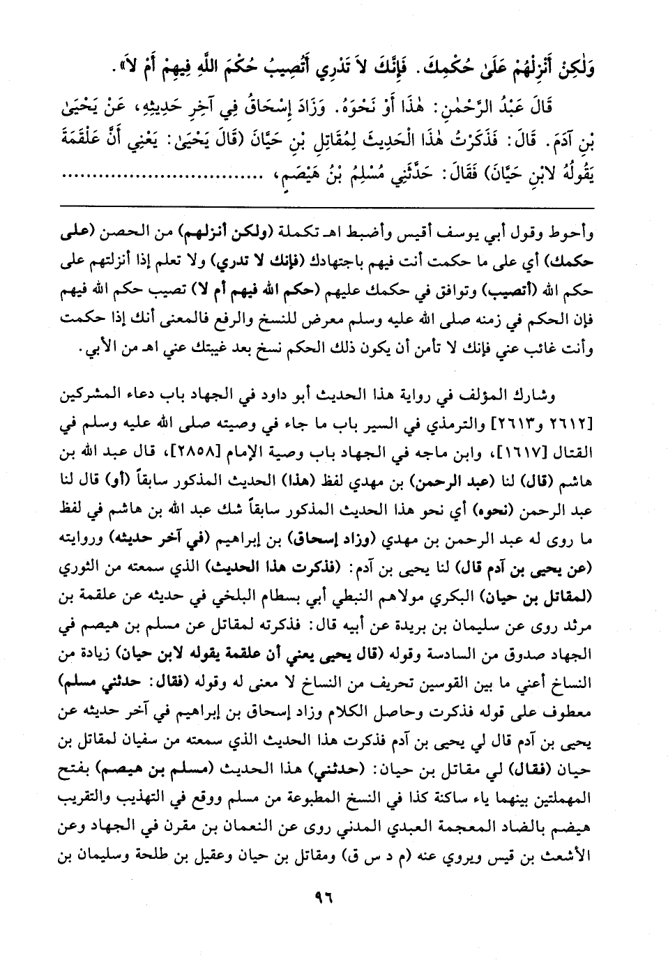قَال عَبْدُ الرَّحْمنِ: هذَا أَوْ نَحْوَهُ. وَزَادَ إِسْحَاقُ فِي آخِرِ حَدِيثِهِ، عَنْ يَحْيَى بْنِ آدَمَ. قَال: فَذَكَرْتُ هذَا الْحَدِيثَ لِمُقَاتِلِ بْنِ حَيَّانَ (قَال يَحْيَى: يَعْنِي أَنَّ عَلْقَمَةَ يَقُولُهُ لابْنِ حَيَّانَ) فَقَال: حَدَّثَنِي مُسْلِمُ بْنُ هَيصَمٍ،