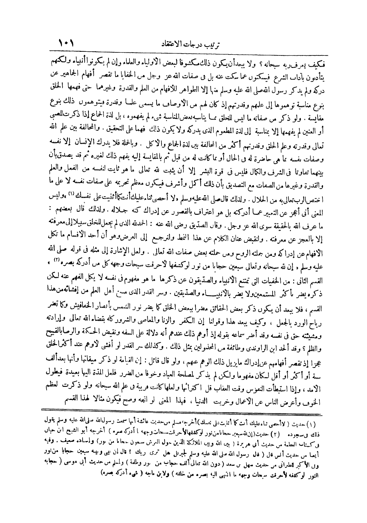 ولعل الإشارة إلى مثله في قوله صلى الله عليه وسلم إن لله سبحانه وتعالى سبعين حجاباً من نور لو كشفها لأحرقت سبحات وجهه كل من أدركه بصره (¬2)