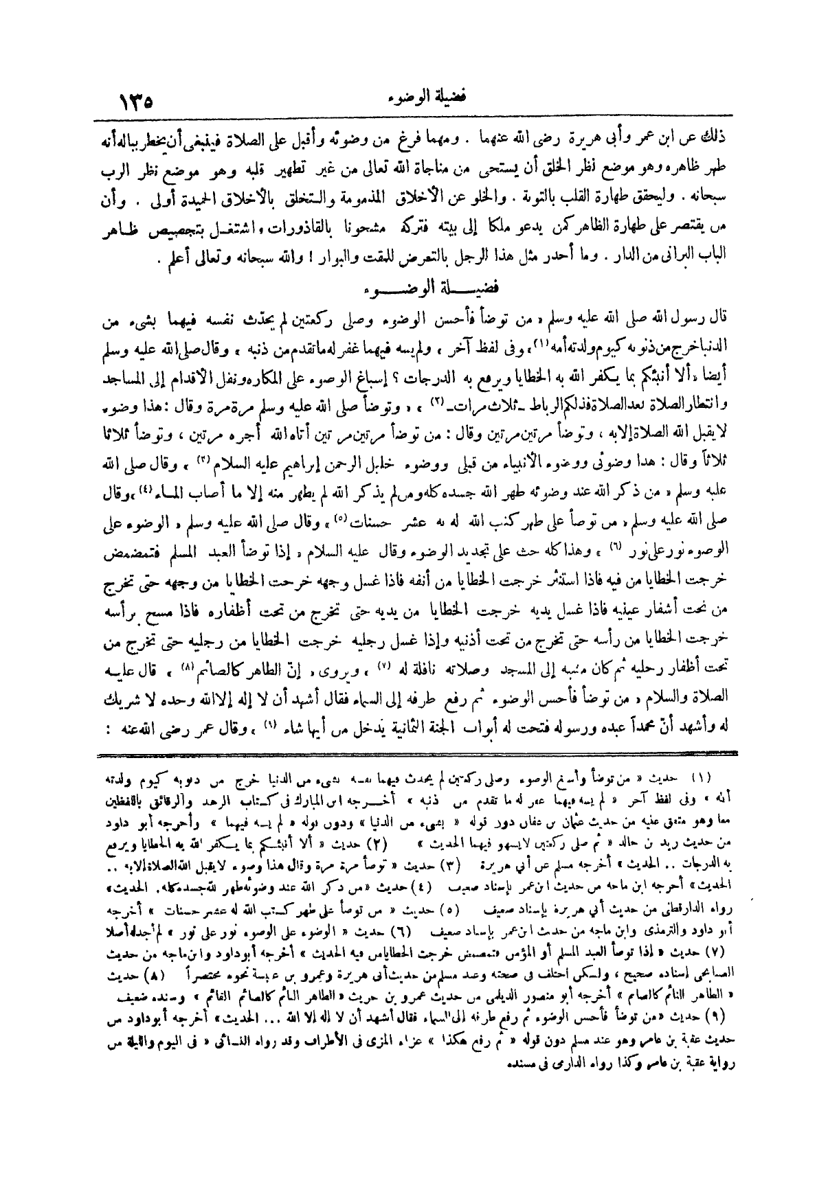 (¬5) حديث من توضأ على طهر كتب الله له عشر حسنات أخرجه أبو داود والترمذي وابن ماجه من حديث ابن عمر بإسناد ضعيف