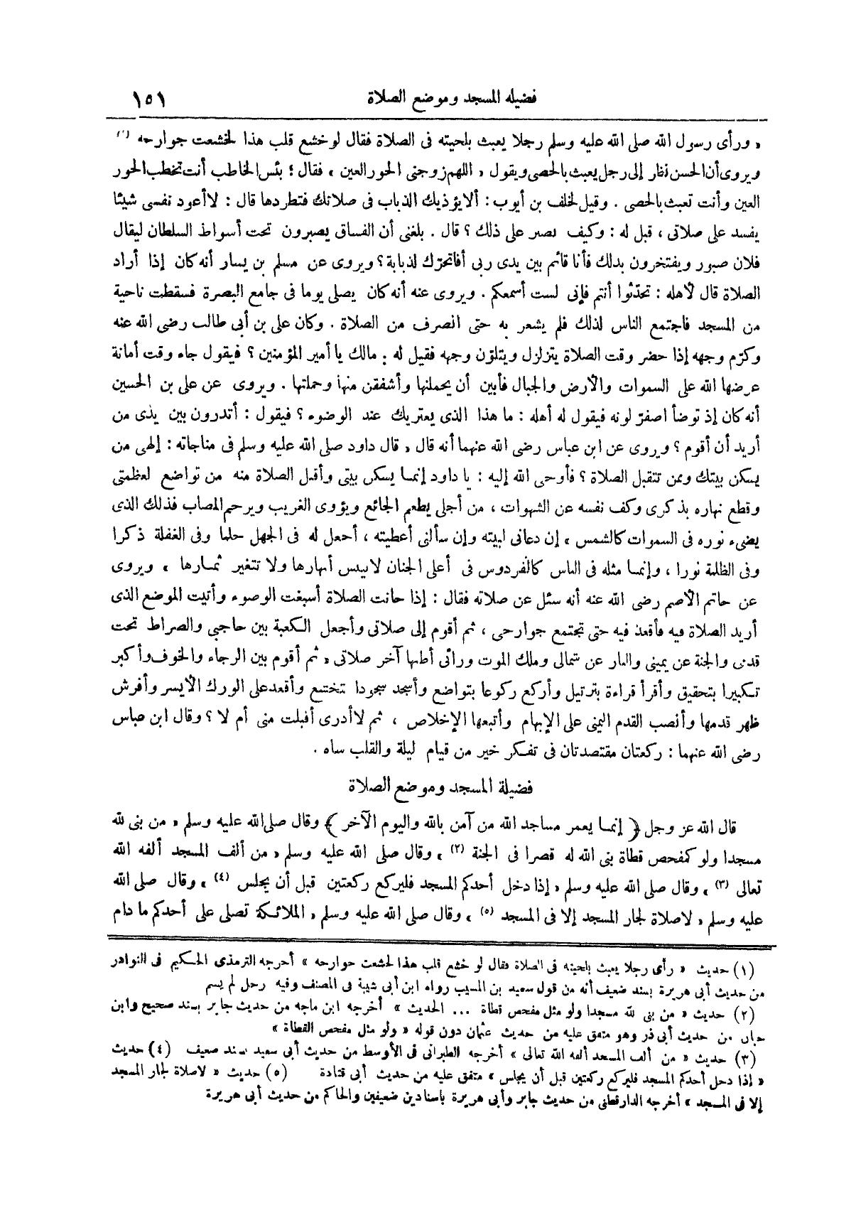 فَضِيلَةُ الْمَسْجِدِ وَمَوْضِعُ الصَّلَاةِ
