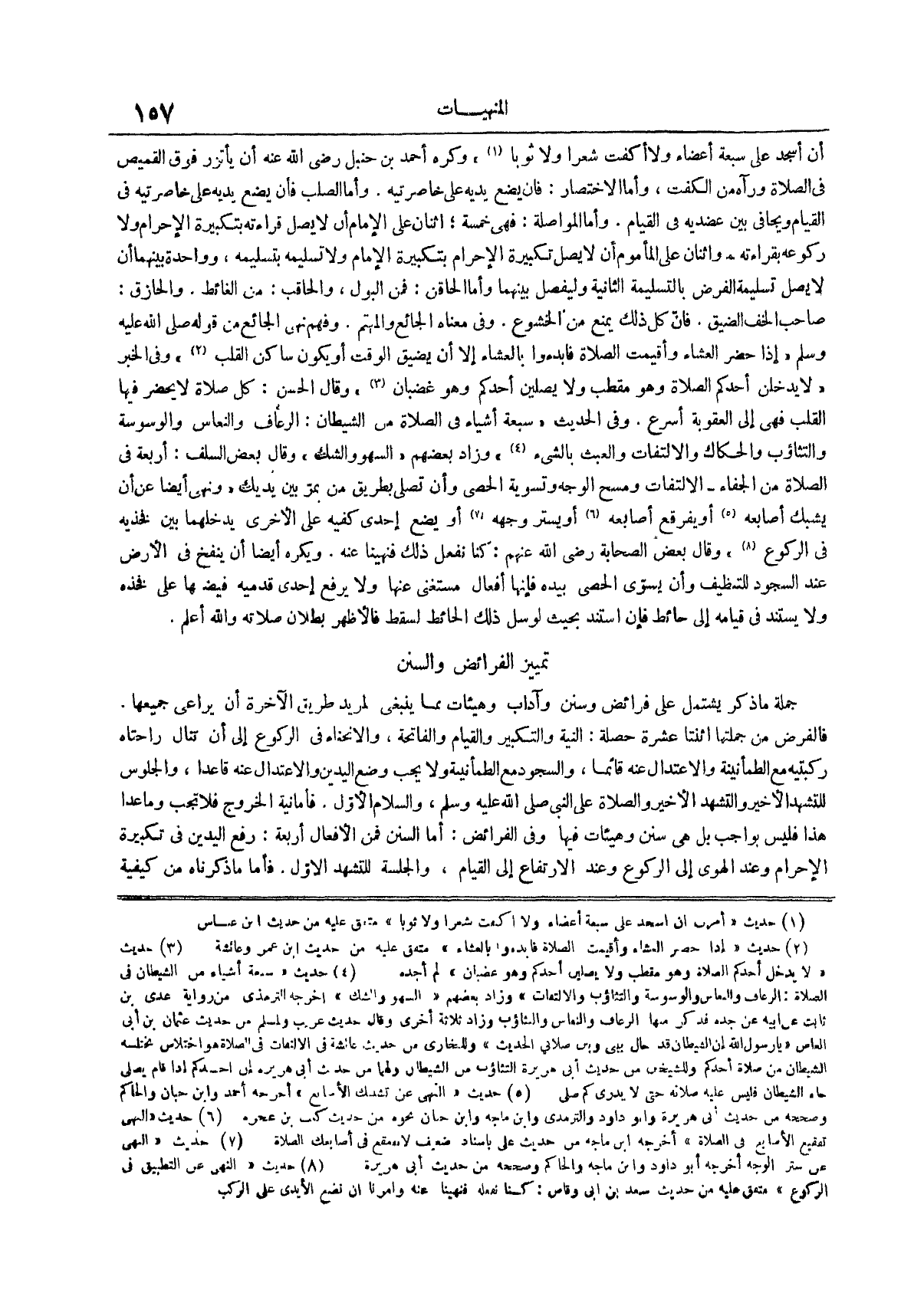 (¬1) حديث أمرت أن أسجد على سبعة أعضاء ولا أكفت شعرا ولا ثوبا متفق عليه من حديث ابن عباس