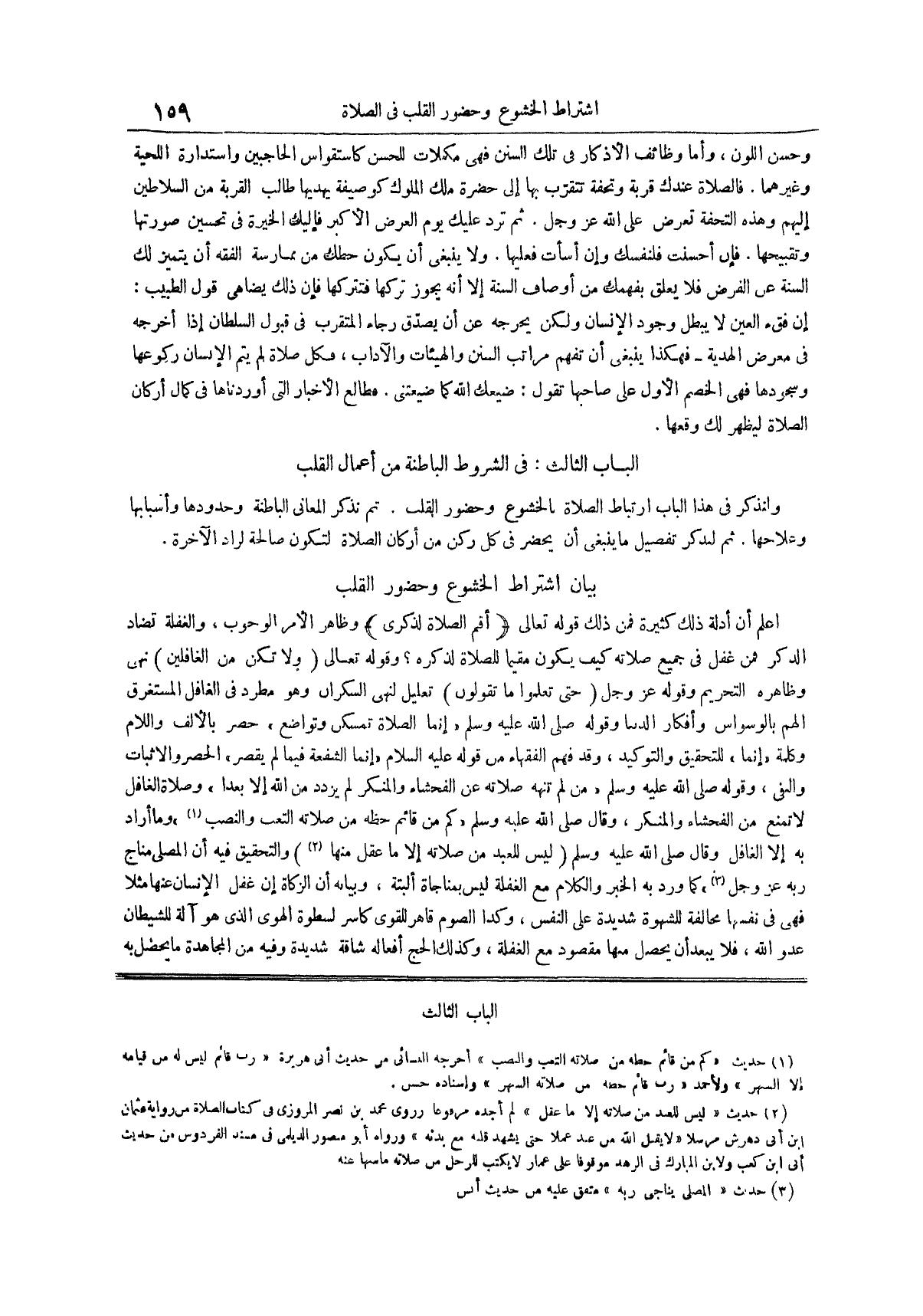 الباب الثالث في الشروط الباطنة من أعمال القلب