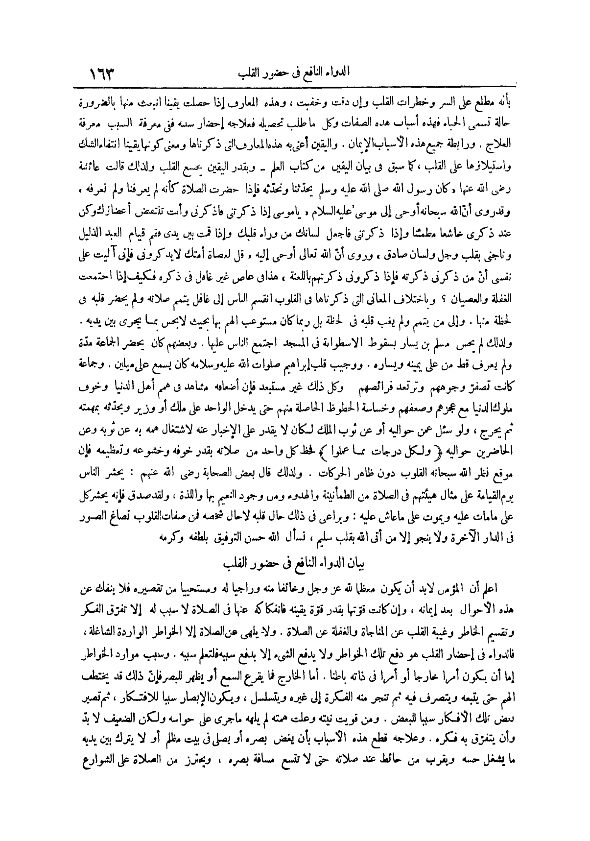 ولذلك قال بعض الصحابة رضي الله عنهم يحشر الناس يوم القيامة على مثال هيئتهم في الصلاة من الطمأنينة والهدوء ومن وجود النعيم بها واللذة ولقد صدق فإنه يحشر كل على ما مات عليه ويموت على ما عاش عليه ويراعى في ذلك حال قلبه لا حال شخصه فمن صفات القلوب تصاغ الصور في الدار الآخرة وَلَا يَنْجُو إِلَّا مَنْ أَتَى اللَّهَ بِقَلْبٍ سليم نسأل الله حسن التوفيق بلطفه وكرمه