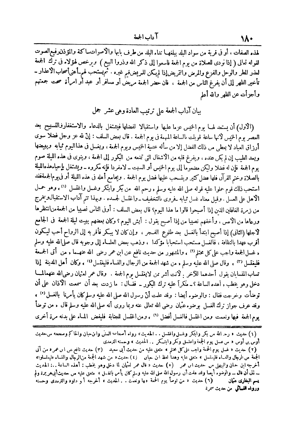 بيان آداب الجمعة على ترتيب العادة وهي عشر جمل