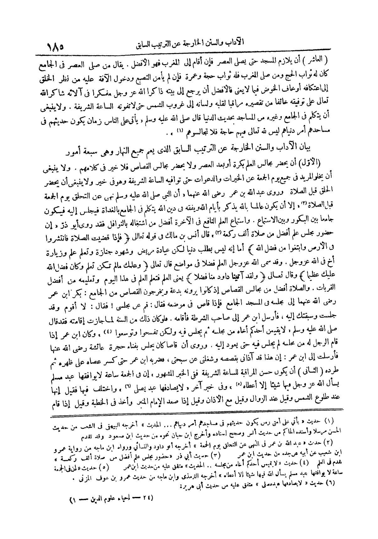بيان الآداب والسنن الخارجة عن الترتيب السابق الذي يعم جميع النهار وهي سبعة أمور
