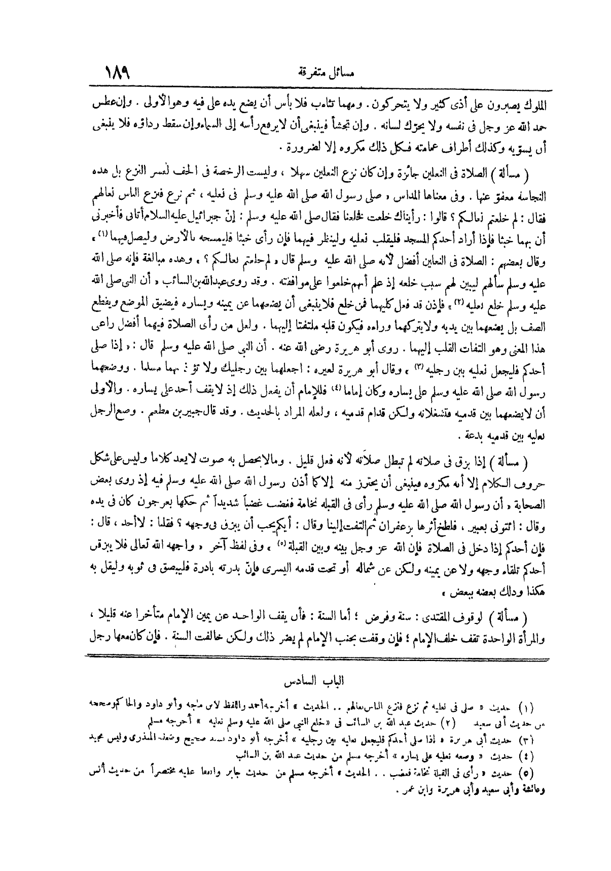 (¬2) حديث عبد الله بن السائب في خلع النبي صلى الله عليه وسلم نعليه أخرجه مسلم