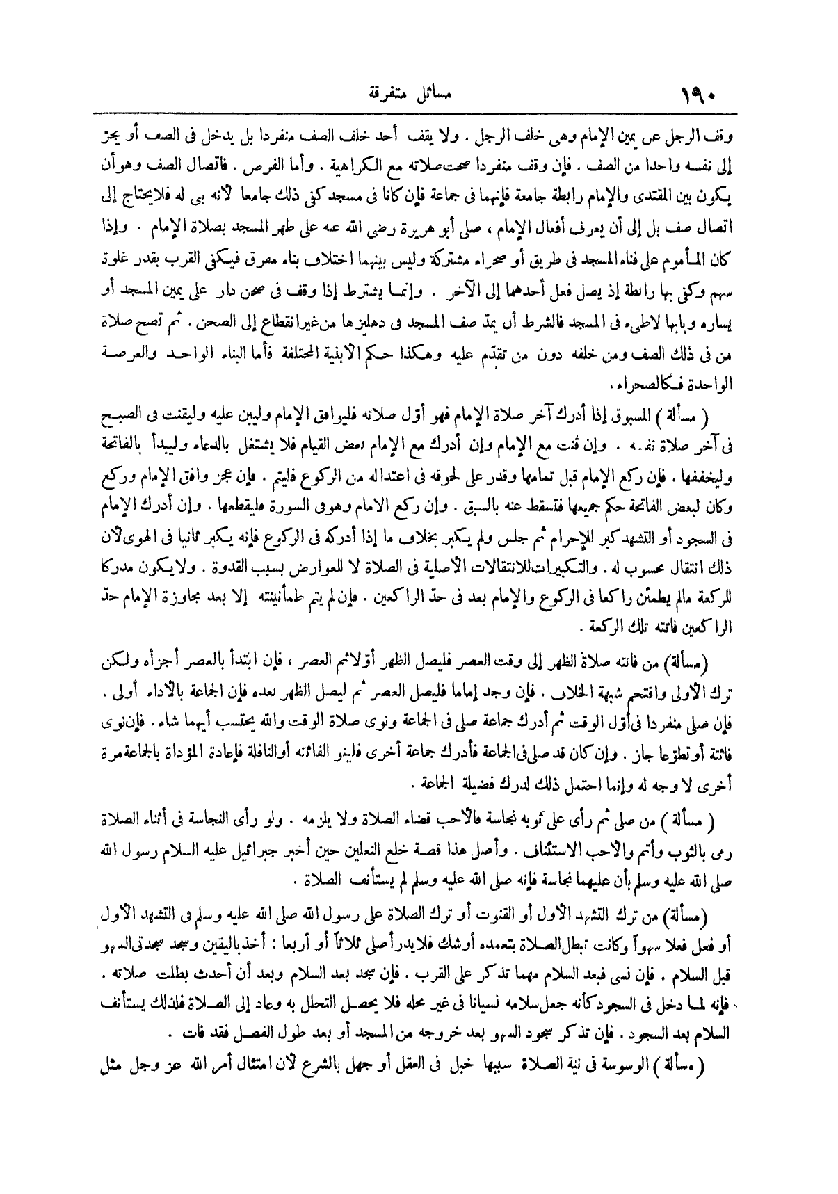 مَسْأَلَةٌ الْمَسْبُوقُ إِذَا أَدْرَكَ آخِرَ صَلَاةِ الْإِمَامِ فَهُوَ أَوَّلُ صَلَاتِهِ فَلْيُوَافِقِ الْإِمَامَ وَلْيَبْنِ عَلَيْهِ وَلْيَقْنُتْ فِي الصُّبْحِ فِي آخِرِ صَلَاةِ نَفْسِهِ