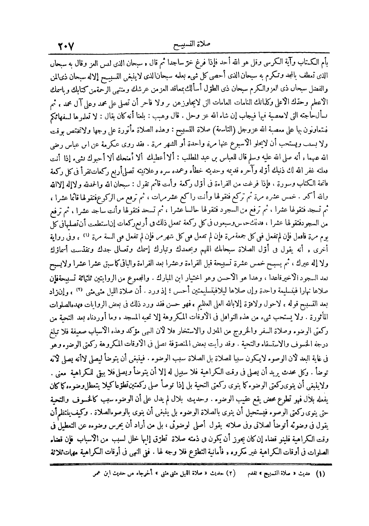 أن صلاة الليل مثنى مثنى (¬2) وإن زاد بعد التسبيح قوله لا حَوْلَ وَلَا قُوَّةَ إِلَّا بِاللَّهِ الْعَلِيِّ الْعَظِيمِ فهو حسن فقد ورد ذلك في بعض الروايات فهذه الصلوات المأثورة