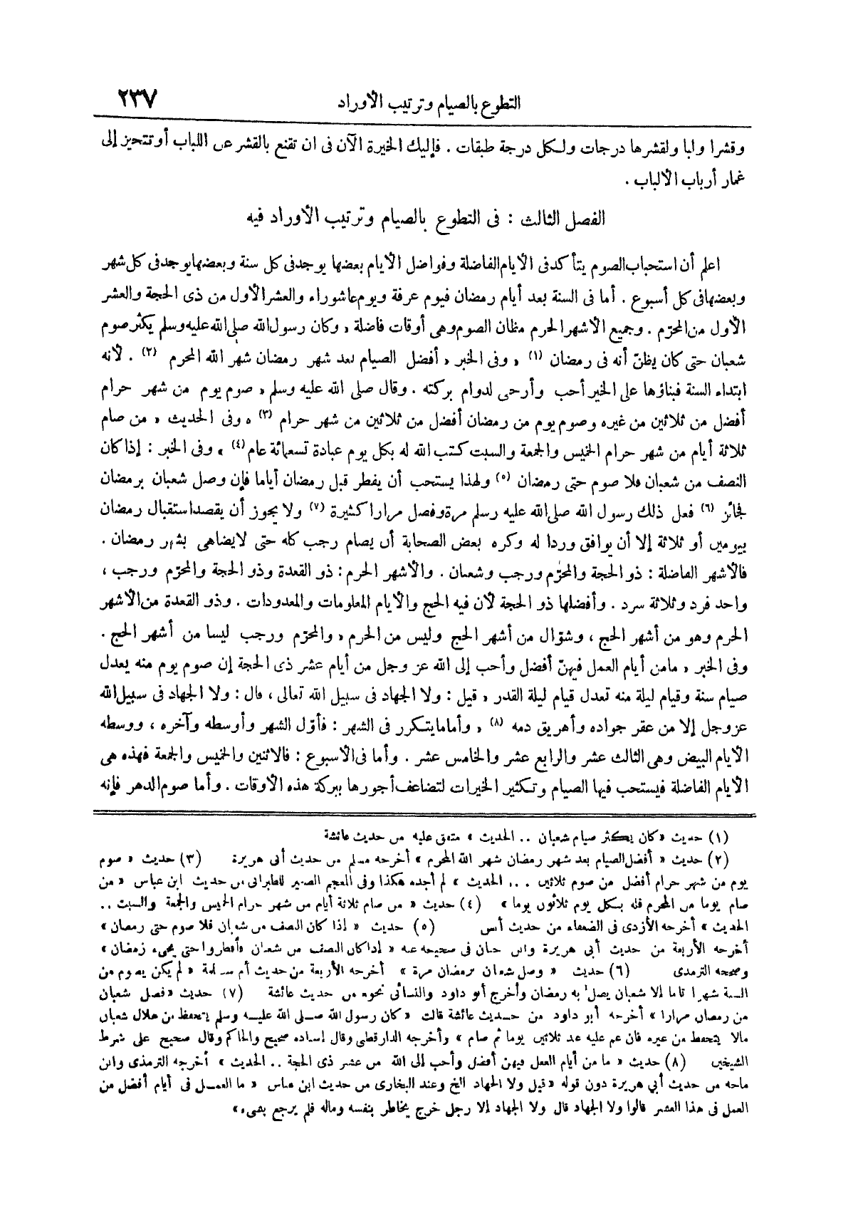 الفصل الثالث في التطوع بالصيام وترتيب الأوراد فيه