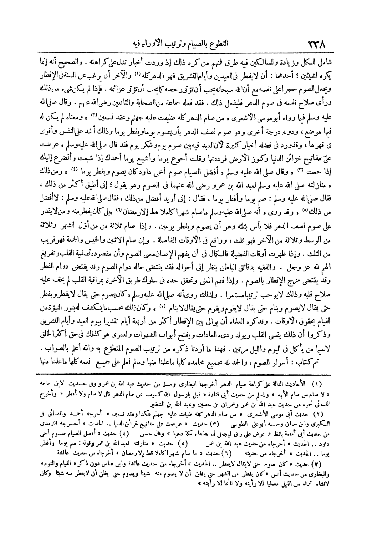 (¬2) حديث أبي موسى الأشعري من صام الدهر كله ضيقت عليه جهنم هكذا وعقد تسعين أخرجه أحمد والنسائي في الكبرى وابن حبان وحسنه أبو علي الطوسي