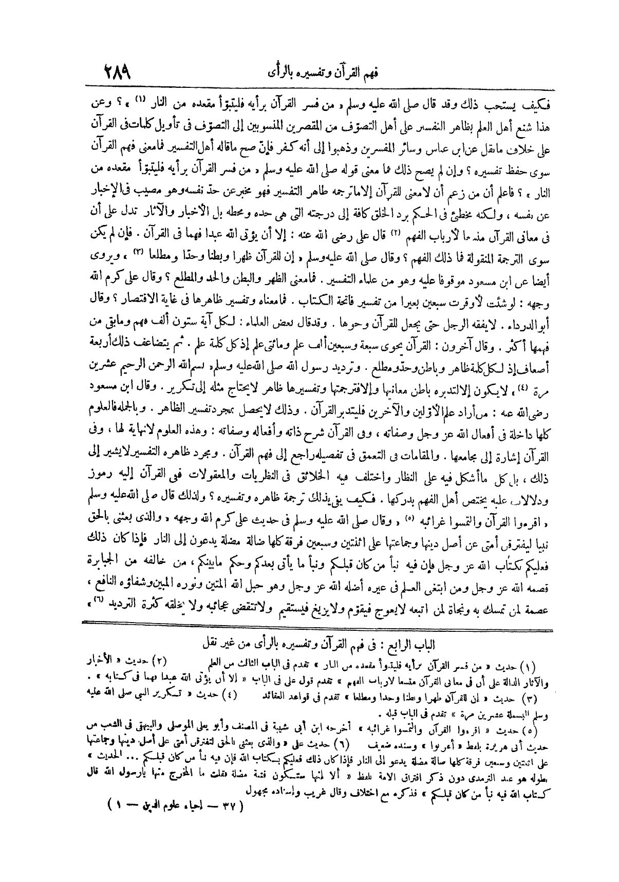 (¬1) حديث من فسر القرآن برأيه فليتبوأ مقعده من النار تقدم في الباب الثالث من العلم