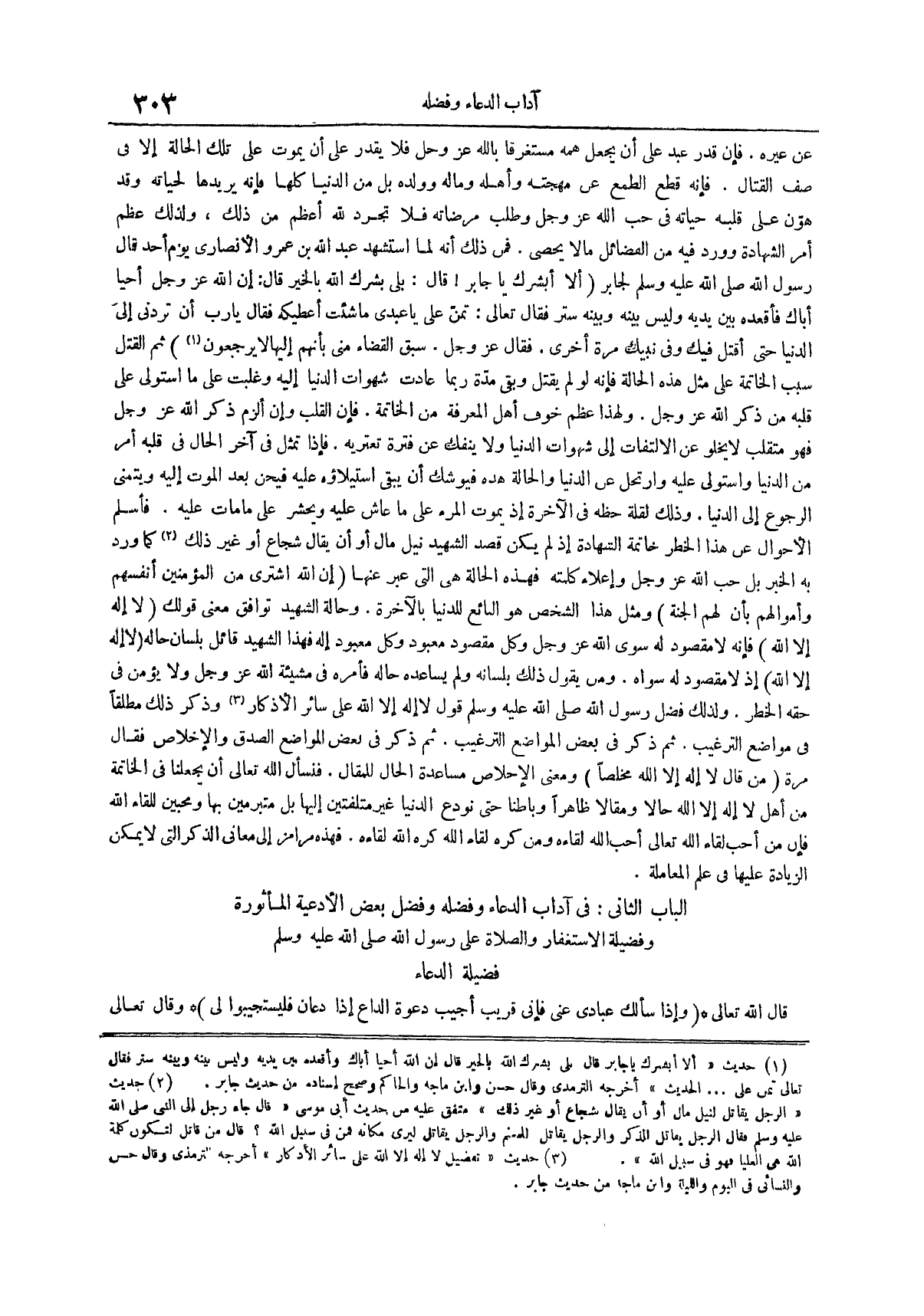 الباب الثاني في آداب الدعاء وفضله وفضل بعض الأدعية المأثورة وفضيلة الاستغفار والصلاة عَلَى رَسُولِ اللَّهِ صَلَّى اللَّهُ عَلَيْهِ وَسَلَّمَ