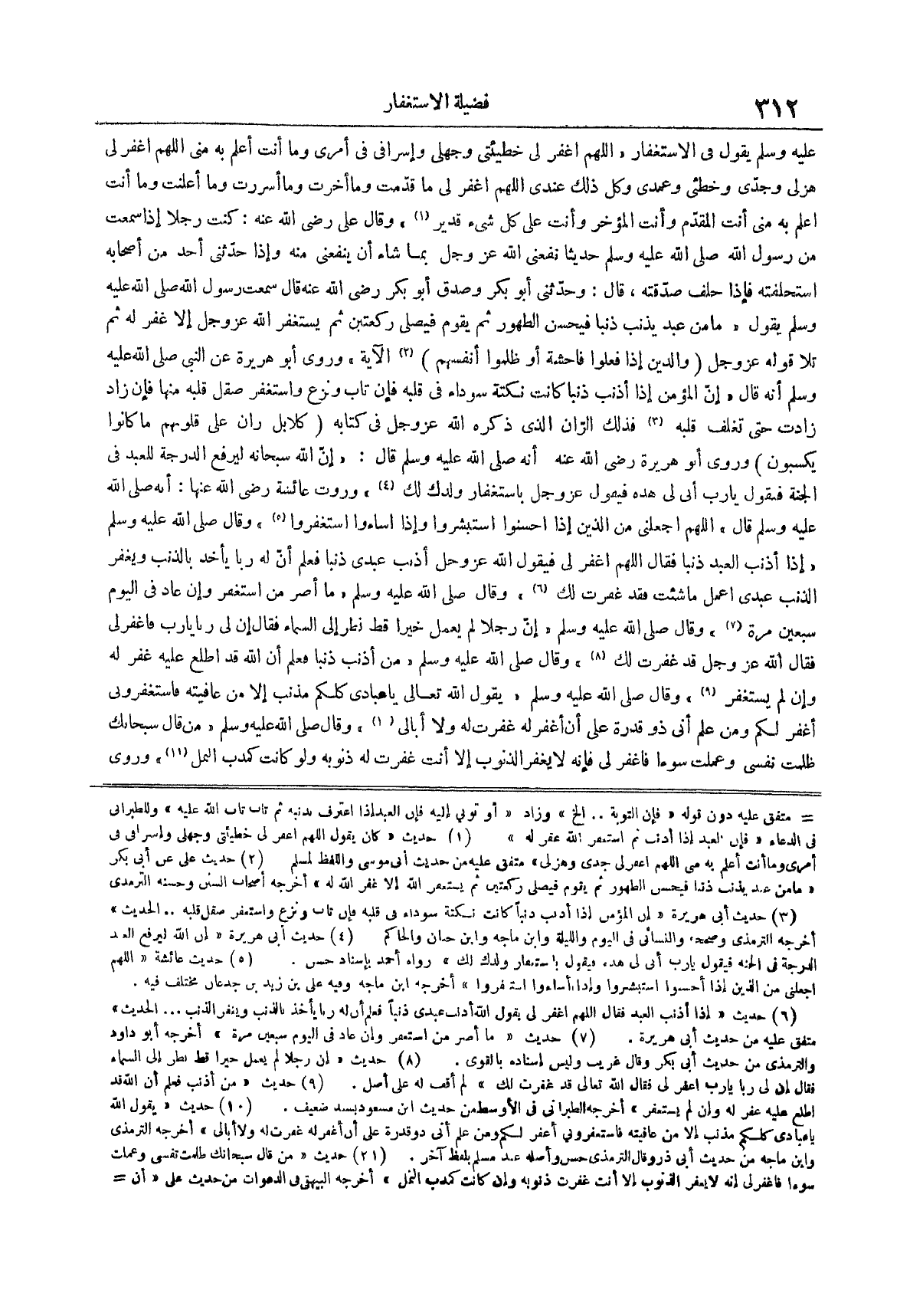 (¬2) حديث علي عن أبي بكر ما من عبد يذنب ذنباً فيحسن الطهور ثم يقوم فيصلي ركعتين ثم يستغفر الله إلا غفر الله له أخرجه أصحاب السنن وحسنه الترمذي