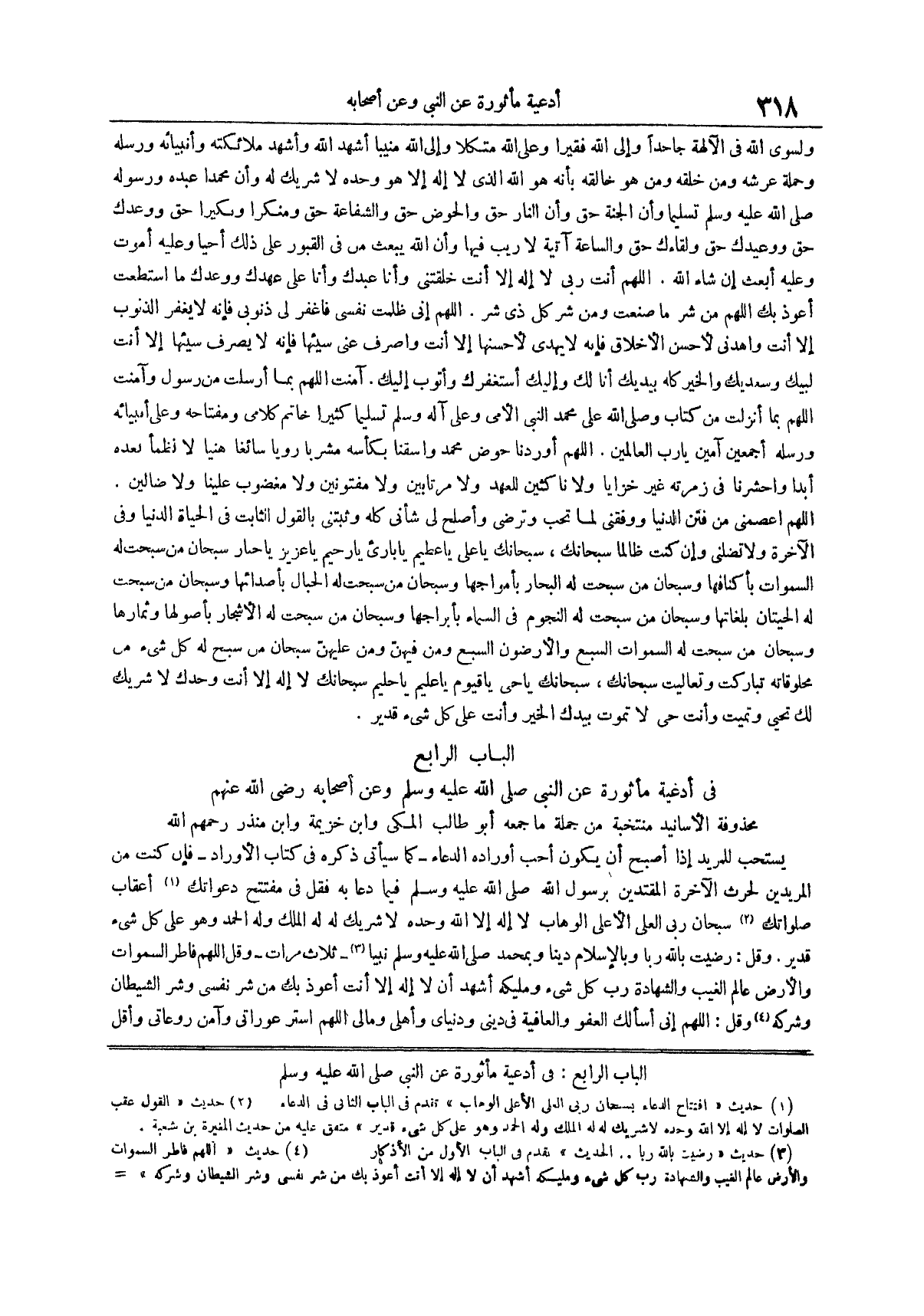 الباب الرابع في أدعية مأثورة عن النبي صلى الله عليه وسلم وعن أصحابه رضي الله عنهم