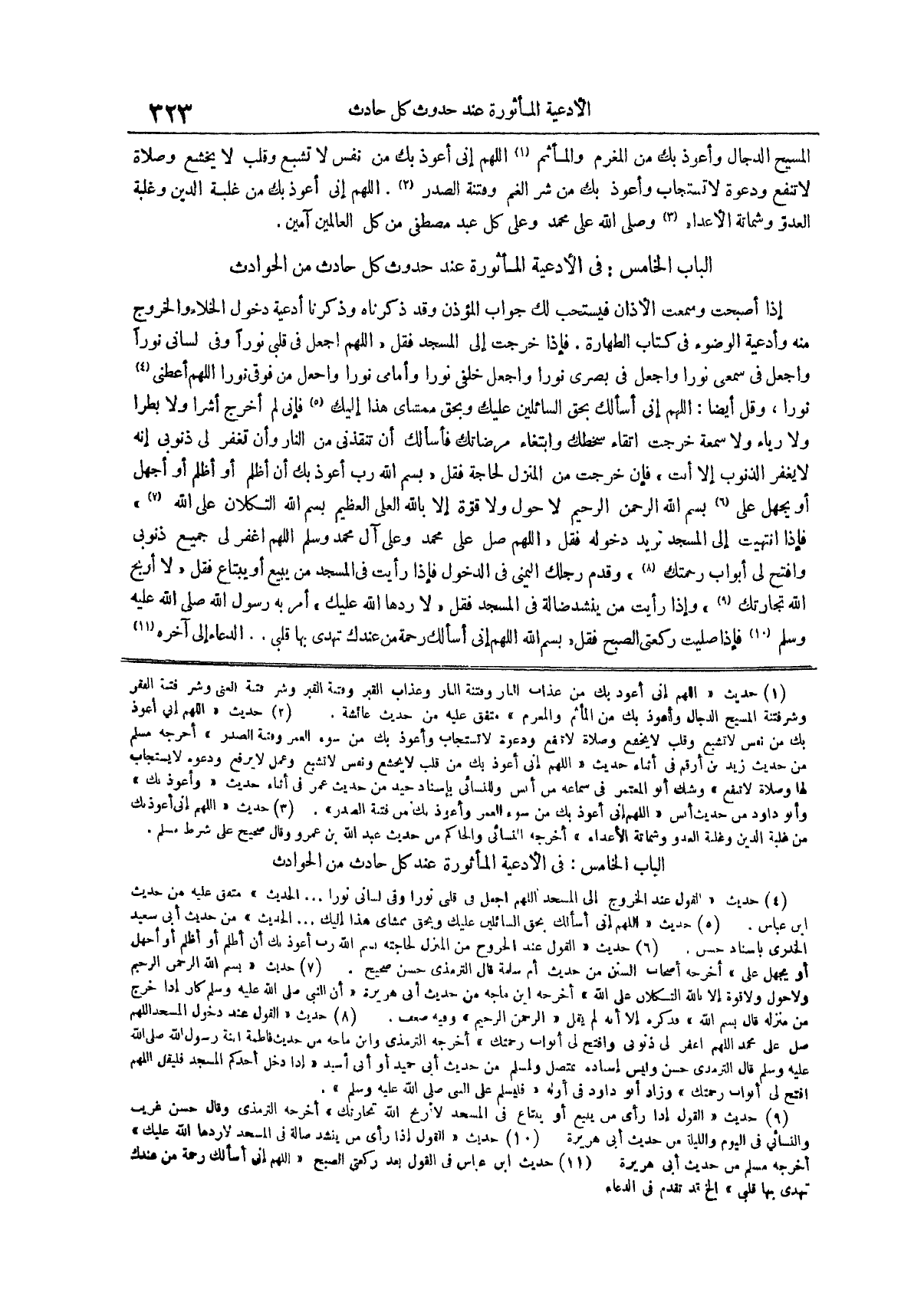 الباب الخامس في الأدعية المأثورة عند حدوث كل حادث من الحوادث
