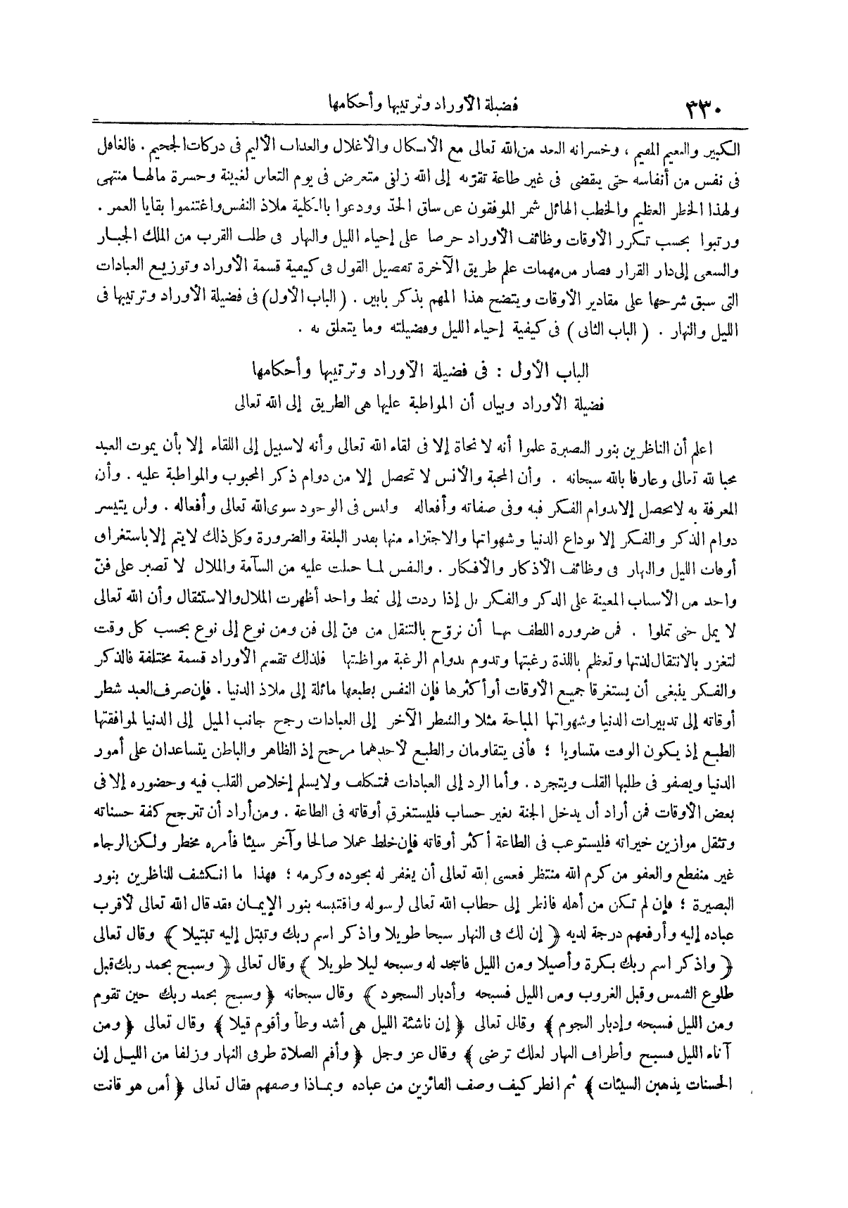 الباب الأول في فضيلة الأوراد وترتيبها وأحكامها