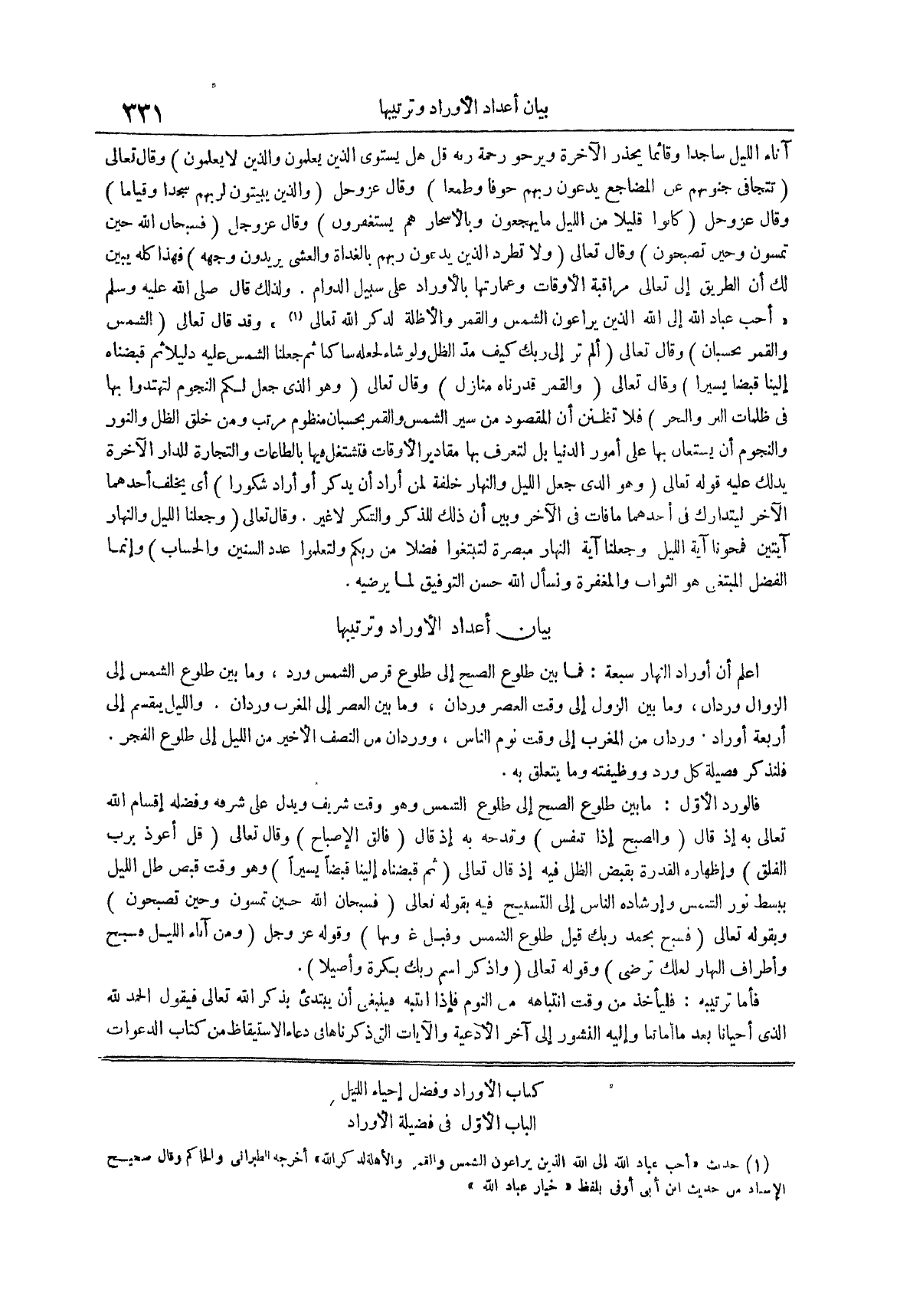 (¬1) كتاب الأوراد وفضل إحياء الليل