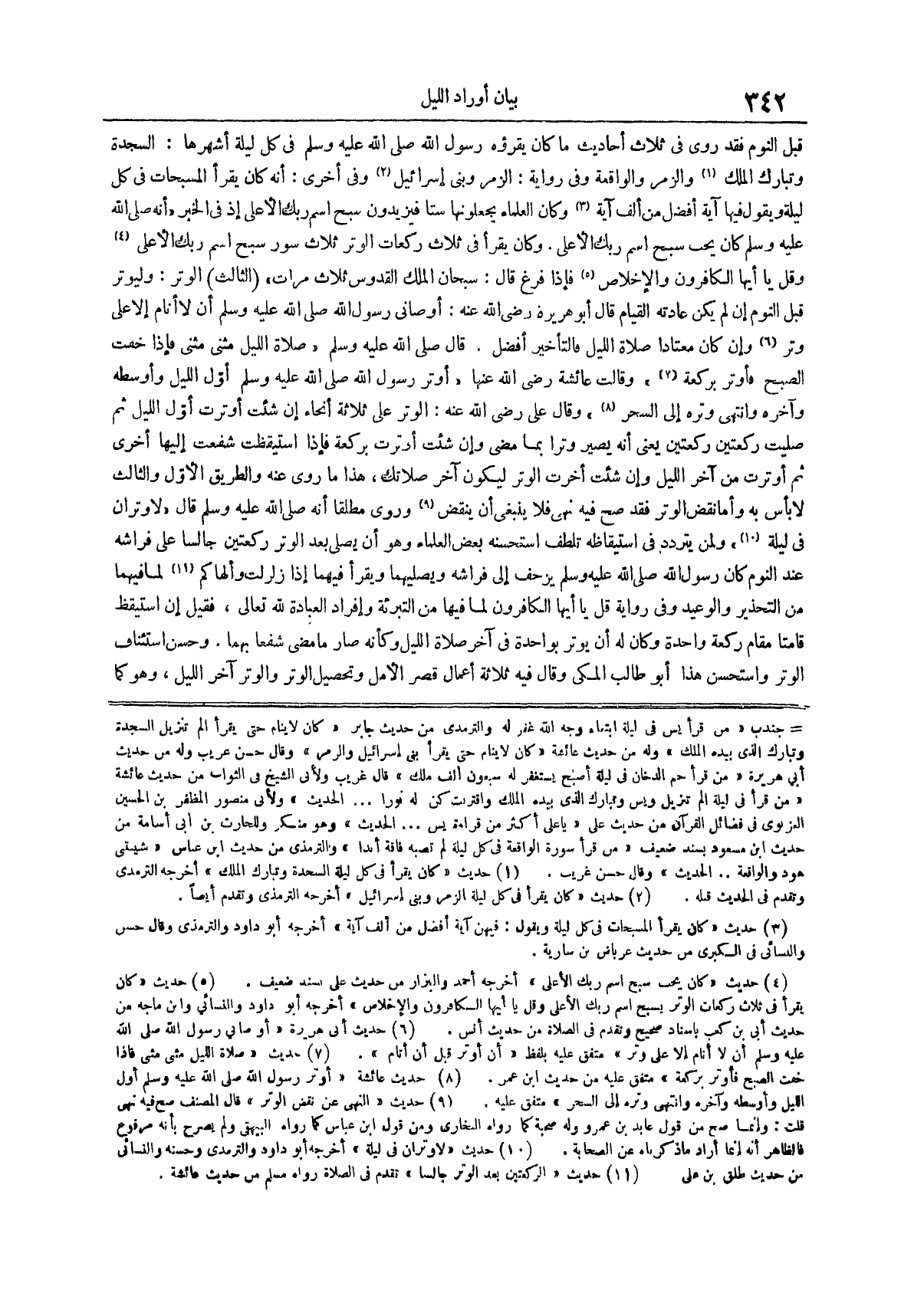 (¬9) حديث لا وتران في ليلة أخرجه أبو داود والترمذي وحسنه والنسائي من حديث طلق بن علي