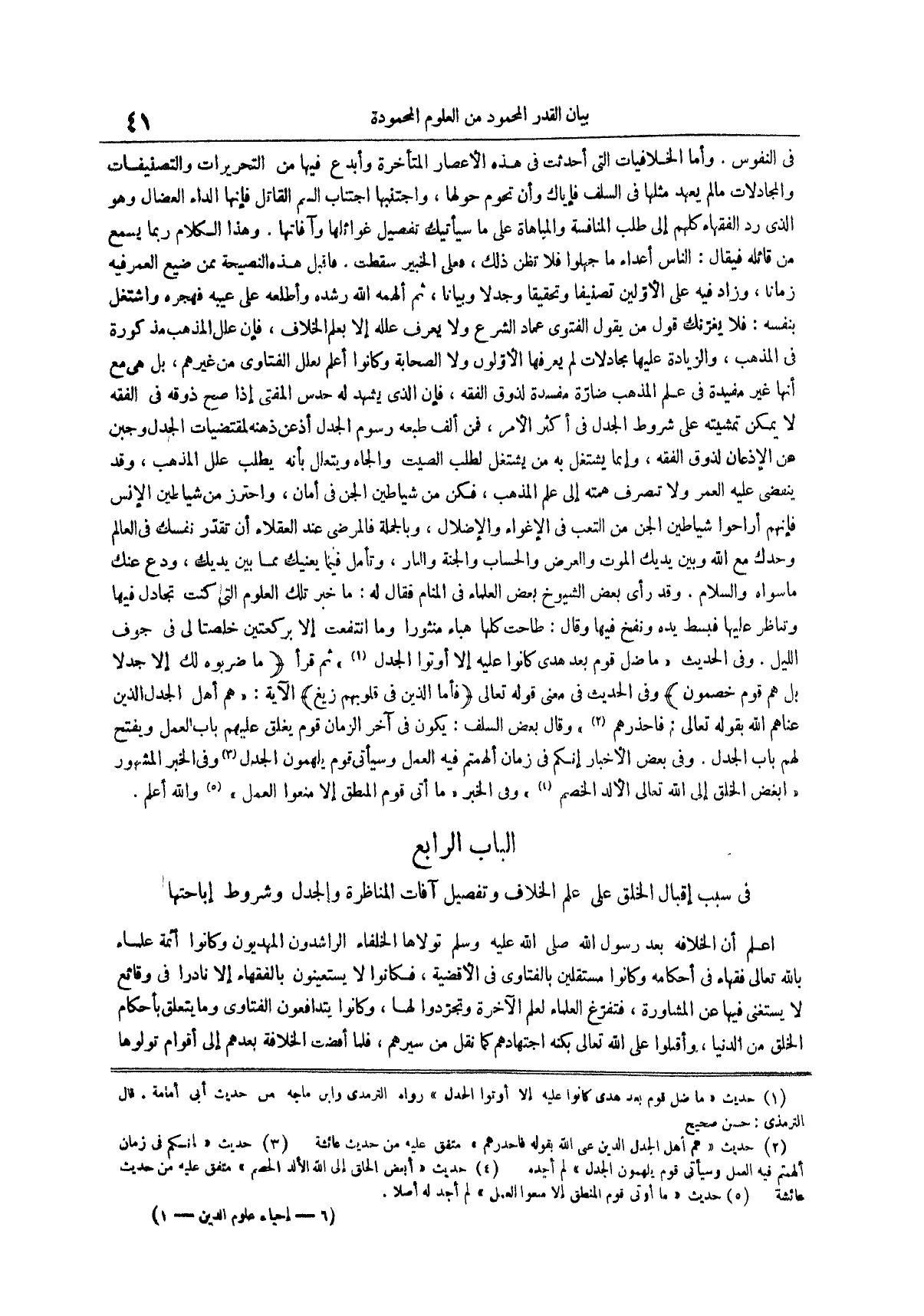 الباب الرابع في سبب إقبال الخلق على علم الخلاف وتفصيل آفات المناظرة والجدل وشروط إباحتها