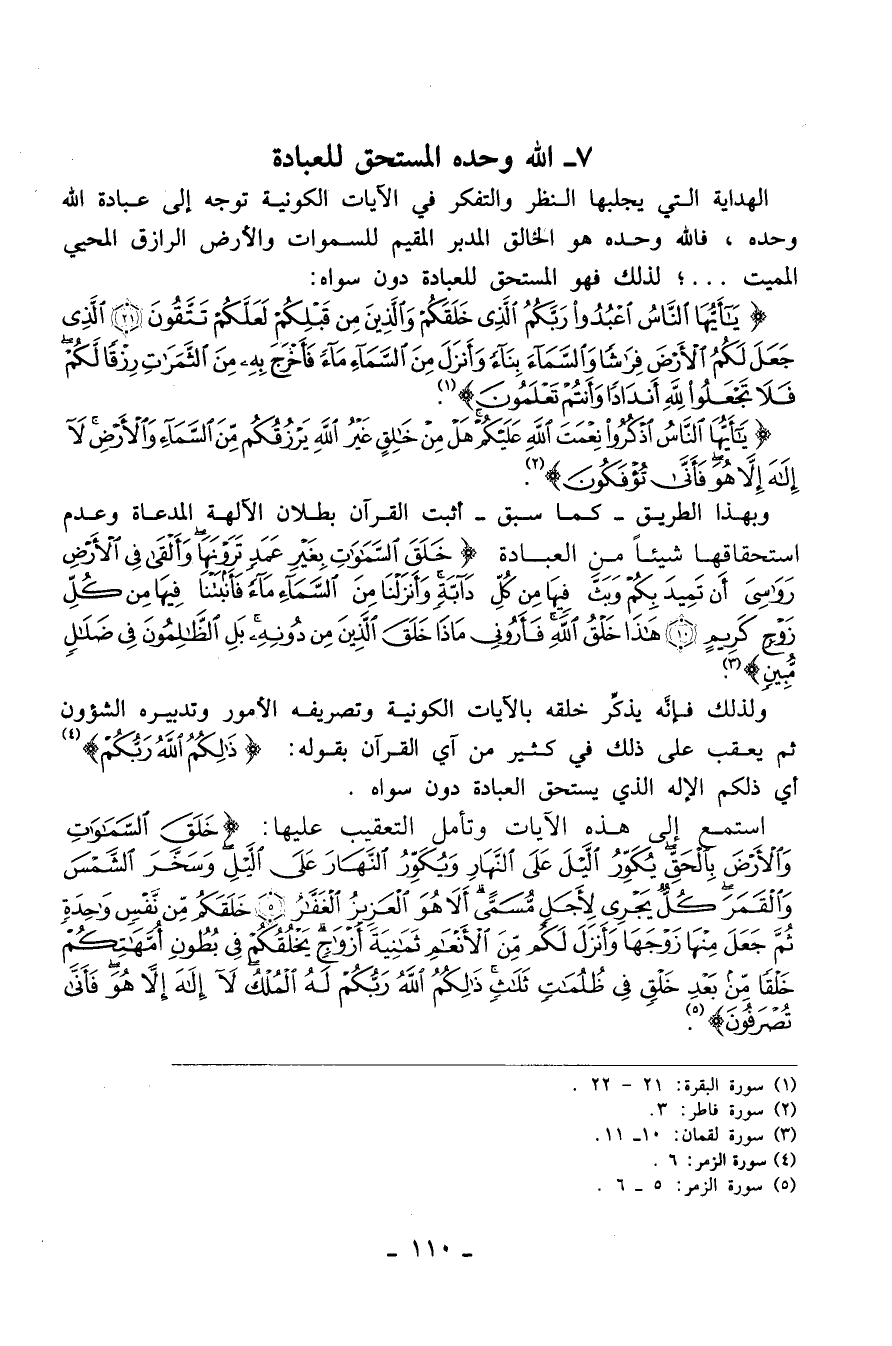 ولذلك فإنّه يذكّر خلقه بالآيات الكونية وتصريفه الأمور وتدبيره الشؤون ثم يعقب على ذلك في كثير من آي القرآن بقوله: (ذلكم الله ربُّكم) [الزمر: 6] أي ذلكم الإله الذي يستحق العبادة دون سواه.