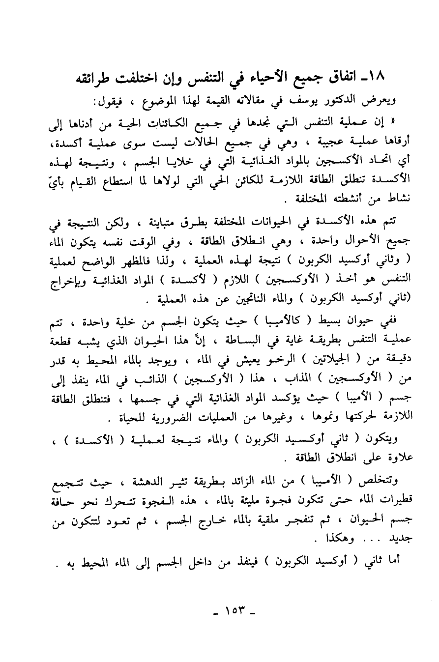 18- اتفاق جميع الأحياء في التنفس وإن اختلفت طرائقه
